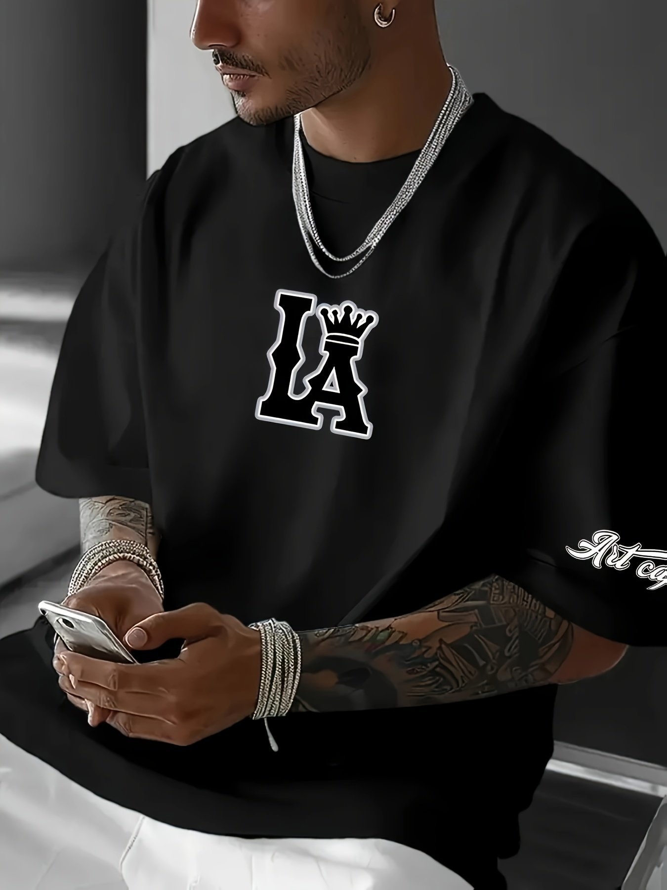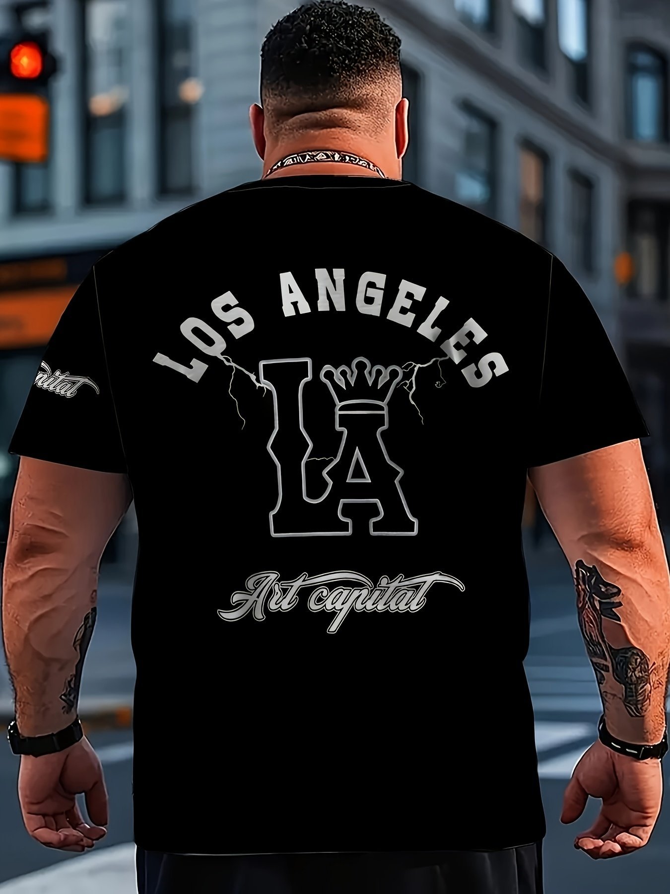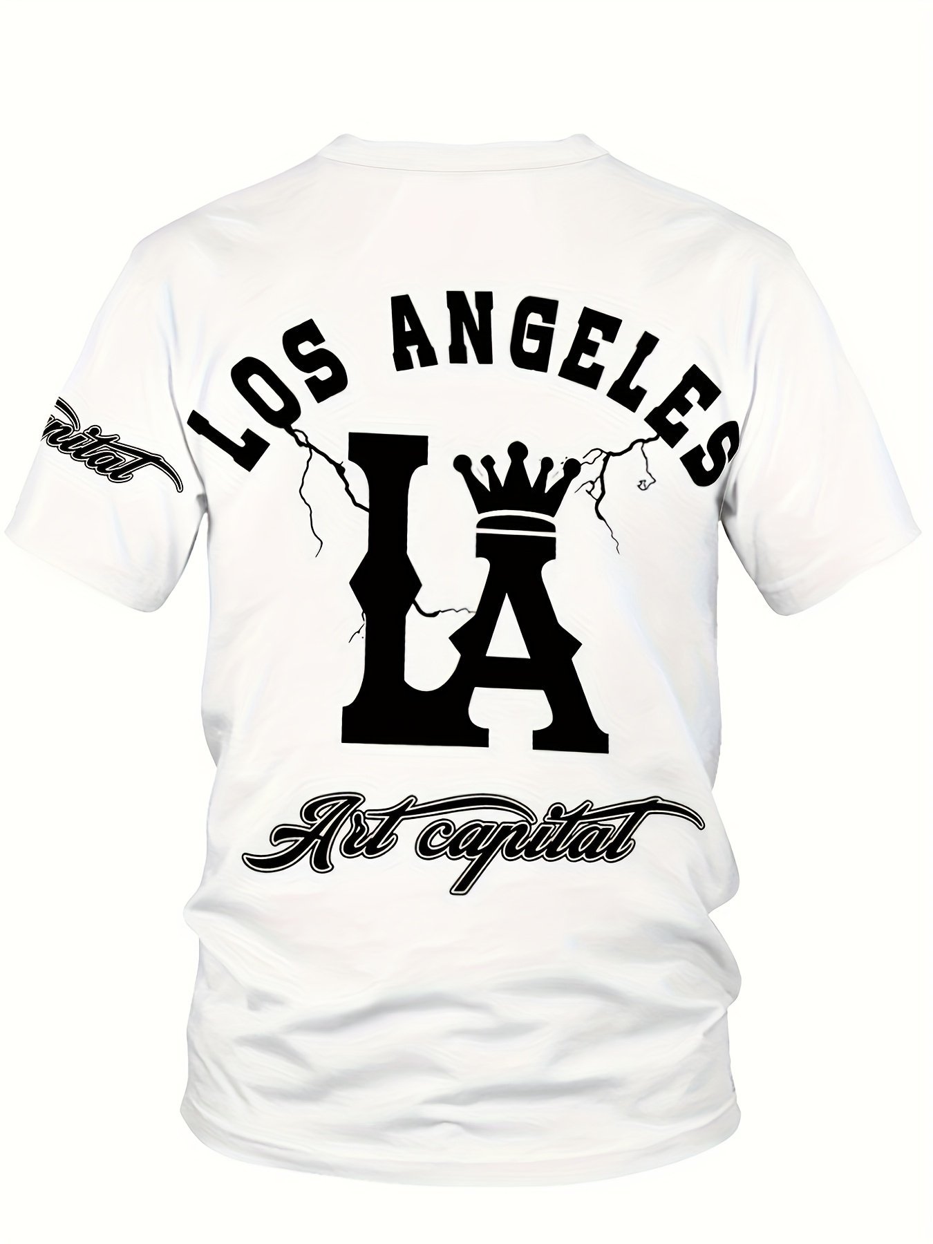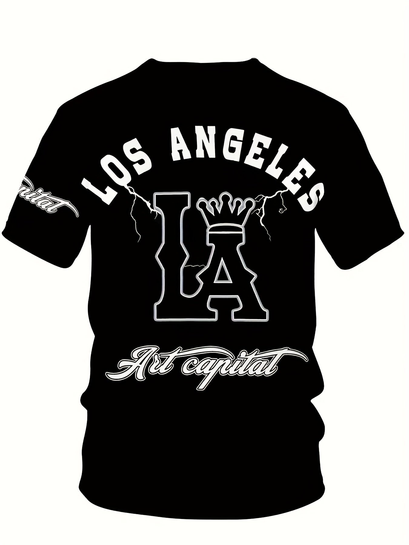 Men’S Plus Size Los Angeles Graphic Print T-Shirt – 3D Crown Design, Stretch Polyester-Spandex Blend, Lightweight 150Gsm, Machine Washable Casual Streetwear Tee, Sporty Tshirt | Urban Fashion | Smooth Texture Shirt, Plus Size