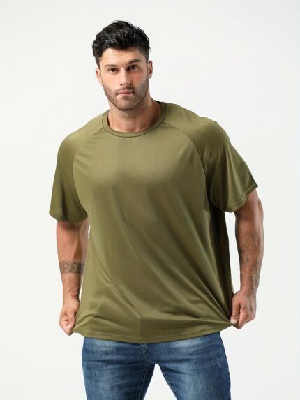 1Pc Men’S Plus Size Moisture-Wicking Breathable Outdoor Sports T-Shirt, Polyester Knit Fabric, Regular Fit, Solid Color, Round Neck, With 140Gsm For Spring/Summer/Autumn Casual Sports Style