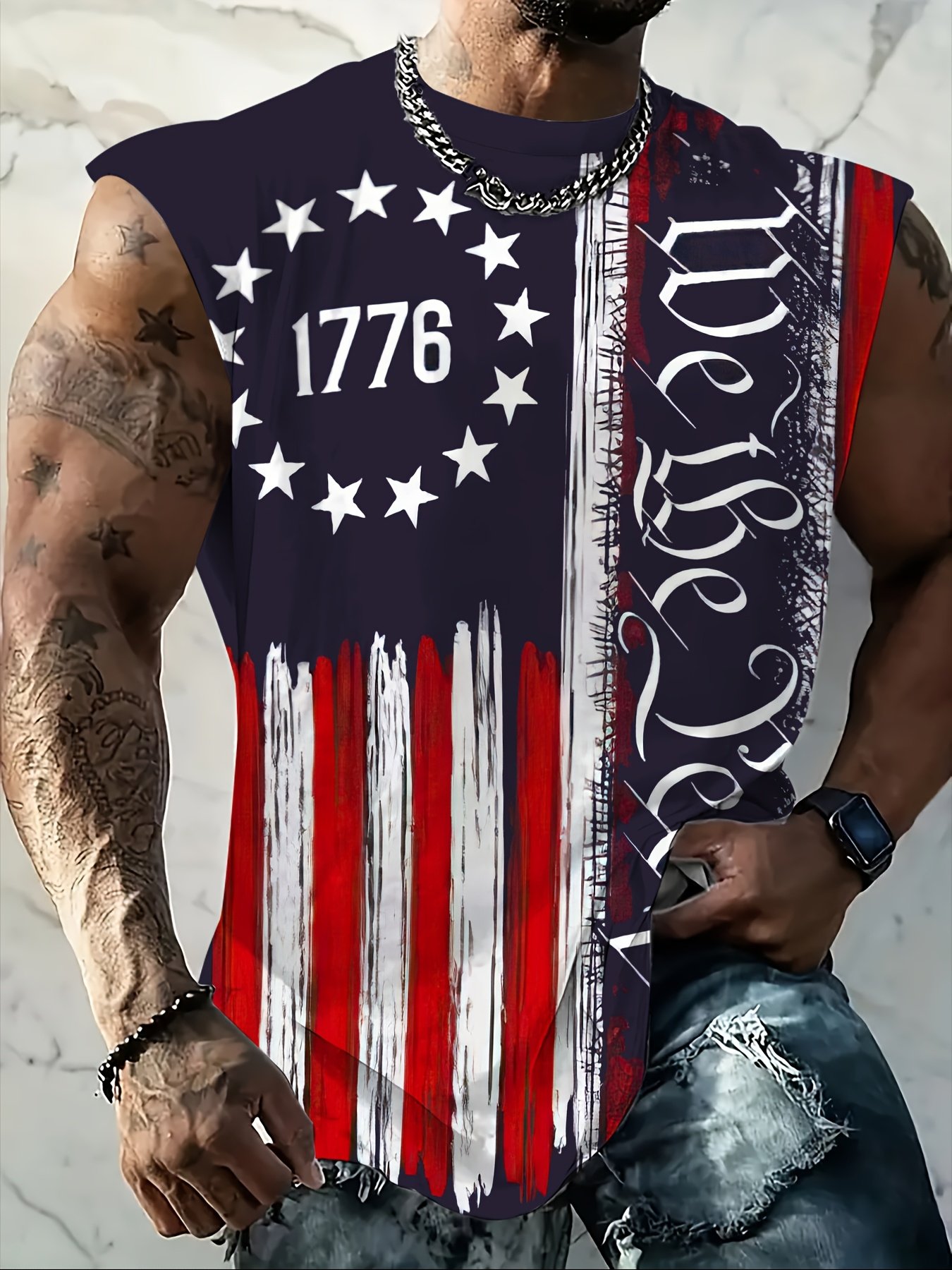 Men’S Plus Size Patriotic Graphic Tank Top – Breathable Sleeveless Athletic Shirt For Summer, Fitness, Basketball & Casual Wear, Navy Blue With Red, White & Blue Print, Casual Sportswear | Bold Print Shirt | Comfortable Fit, Plus Size