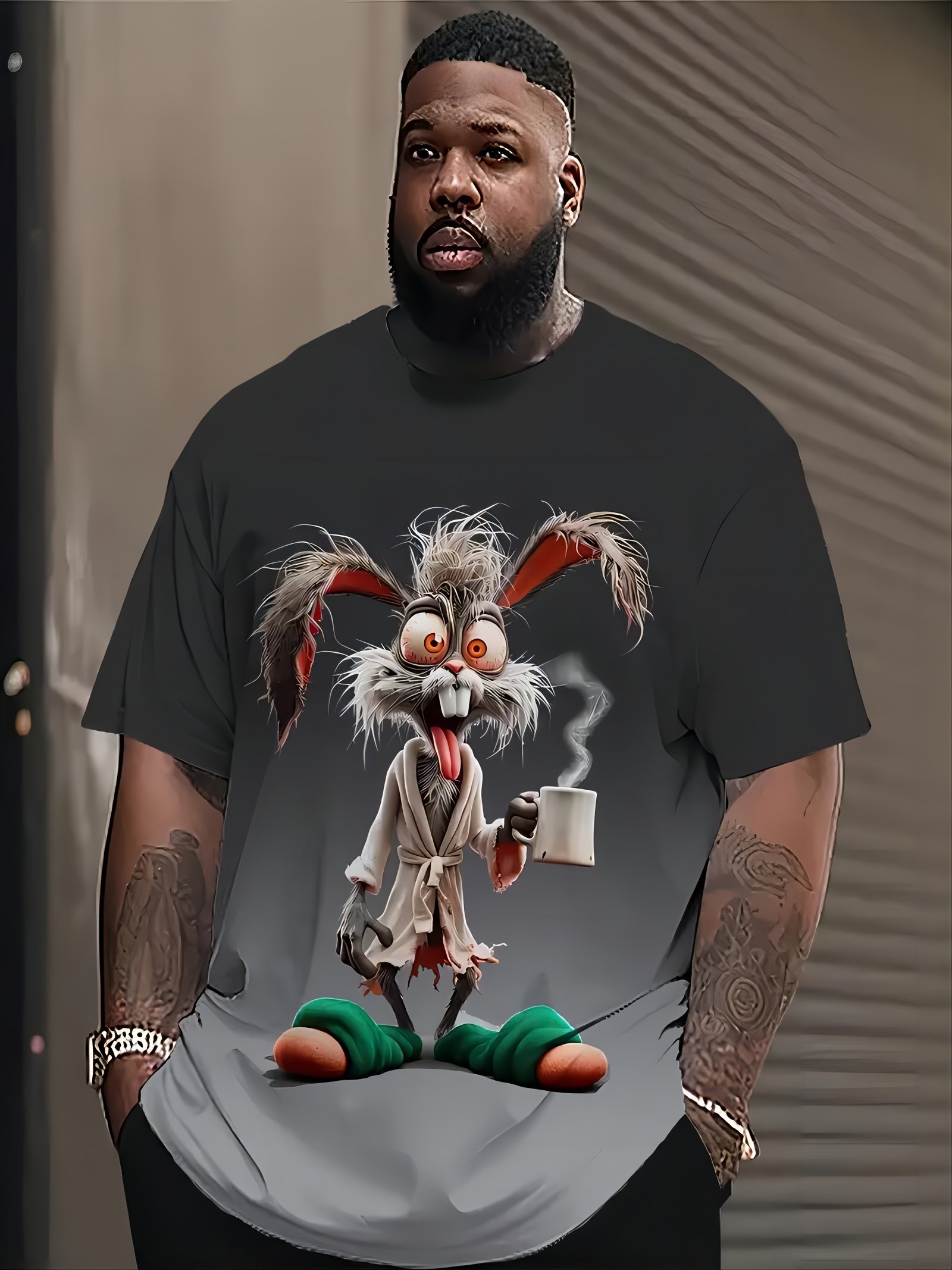 Men’S Plus Size T-Shirt With Whimsical Rabbit 3D Print – Casual Streetwear, Short Sleeve, Round Neck, Stretchy Polyester Blend, Perfect For Summer Outings & Vacations, Oversized T Shirt, Plus Size