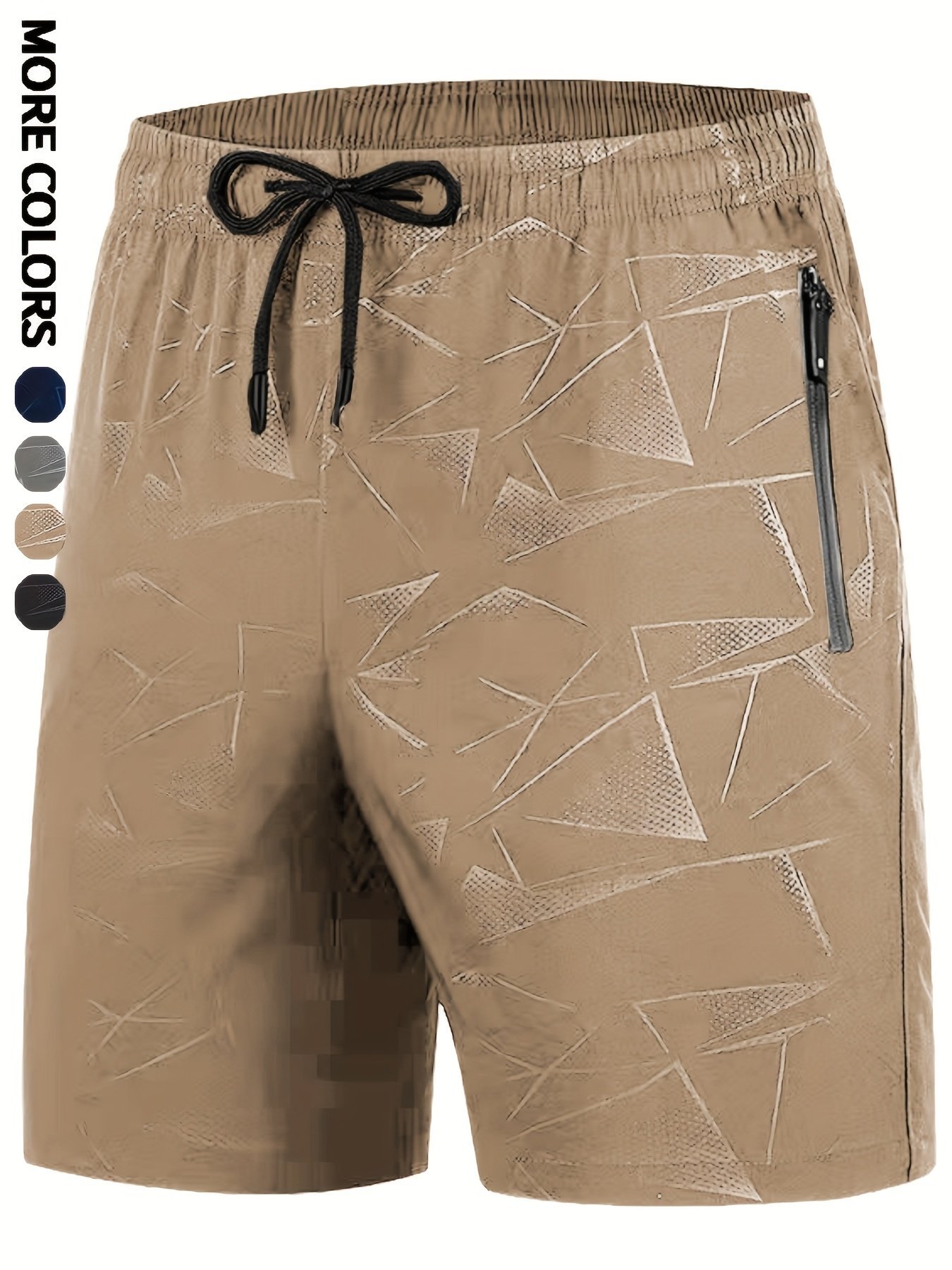 Men’S Quick-Dry Athletic Shorts – Lightweight Workout Gym Running Cycling Pants With Elastic Drawstring Waist, Breathable Stretch Fabric – Beige/Gray/Black/ – Ideal For Fitness, Hiking, Everyday Casual Wear, Sports Activewear, Geometric Pattern, Adjustable Comfort, Plus Size
