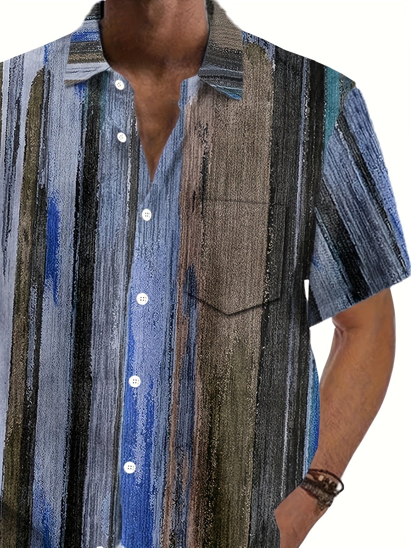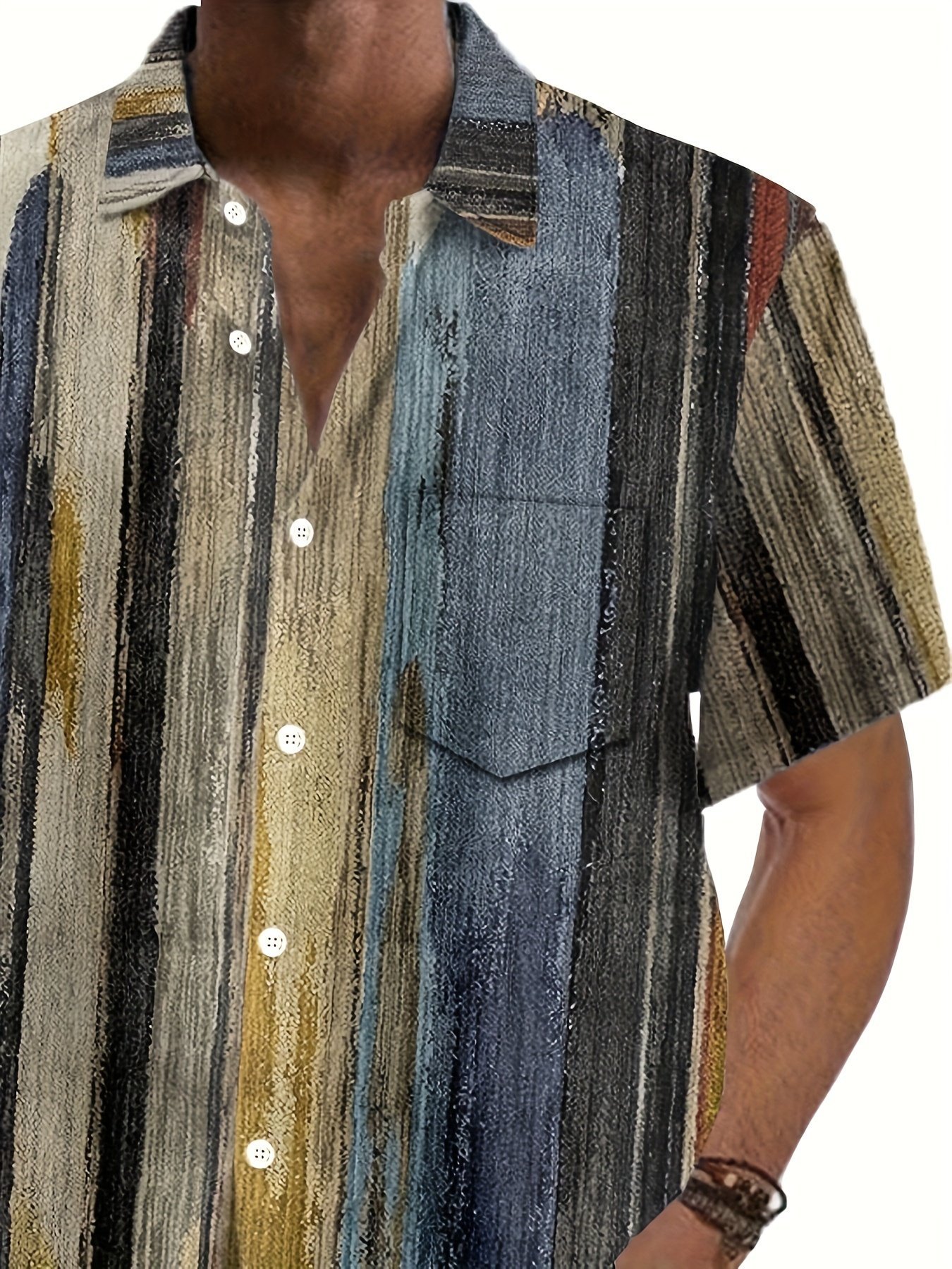 Men’S Retro Striped Button-Up Shirt 0130, Plus Size