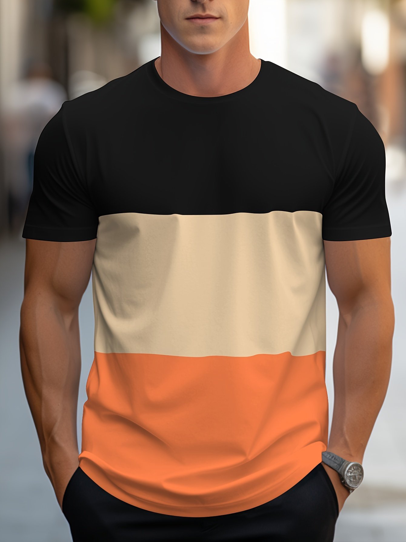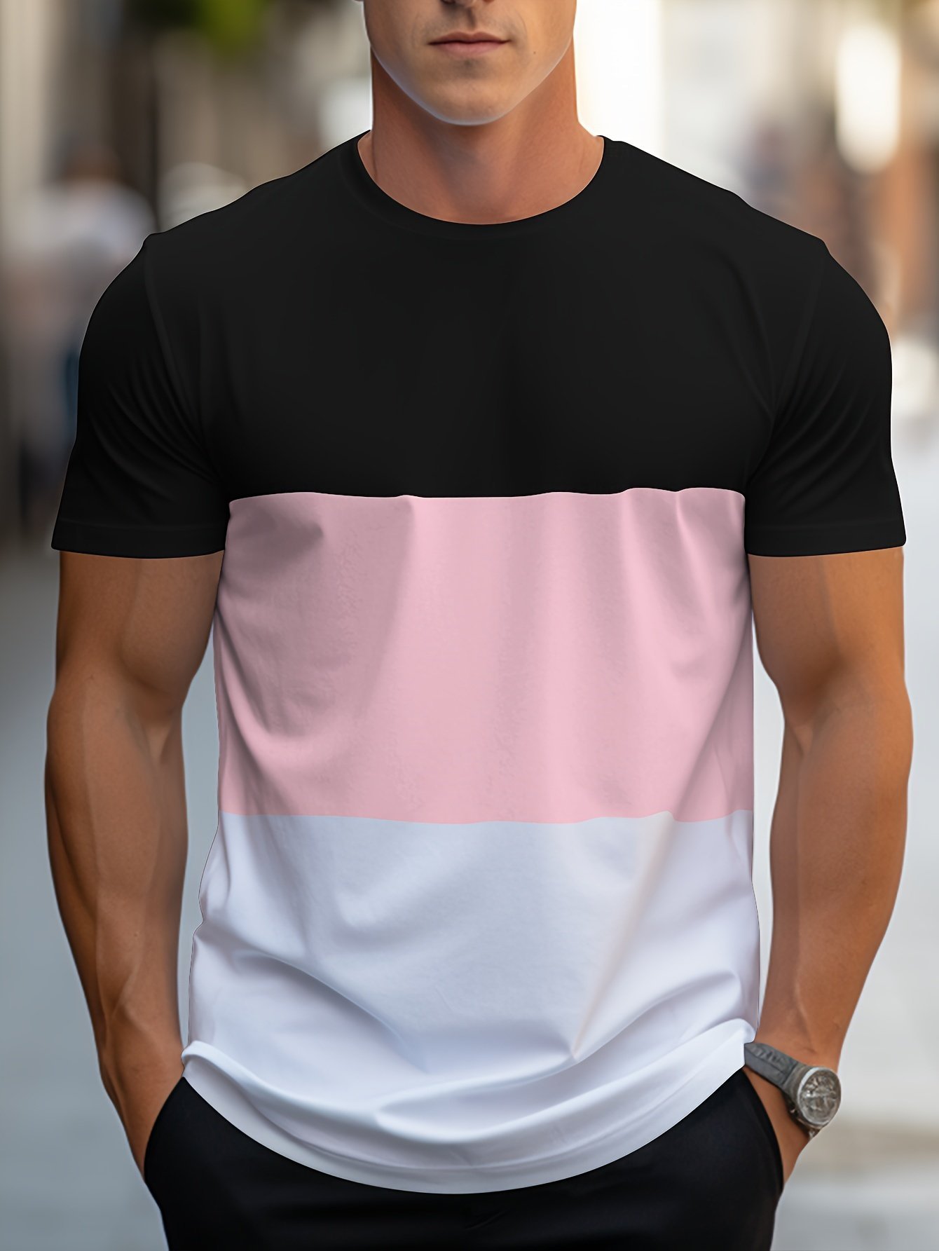 Men’S Simple Color-Blocked T-Shirt, Regular Fit For Summer.