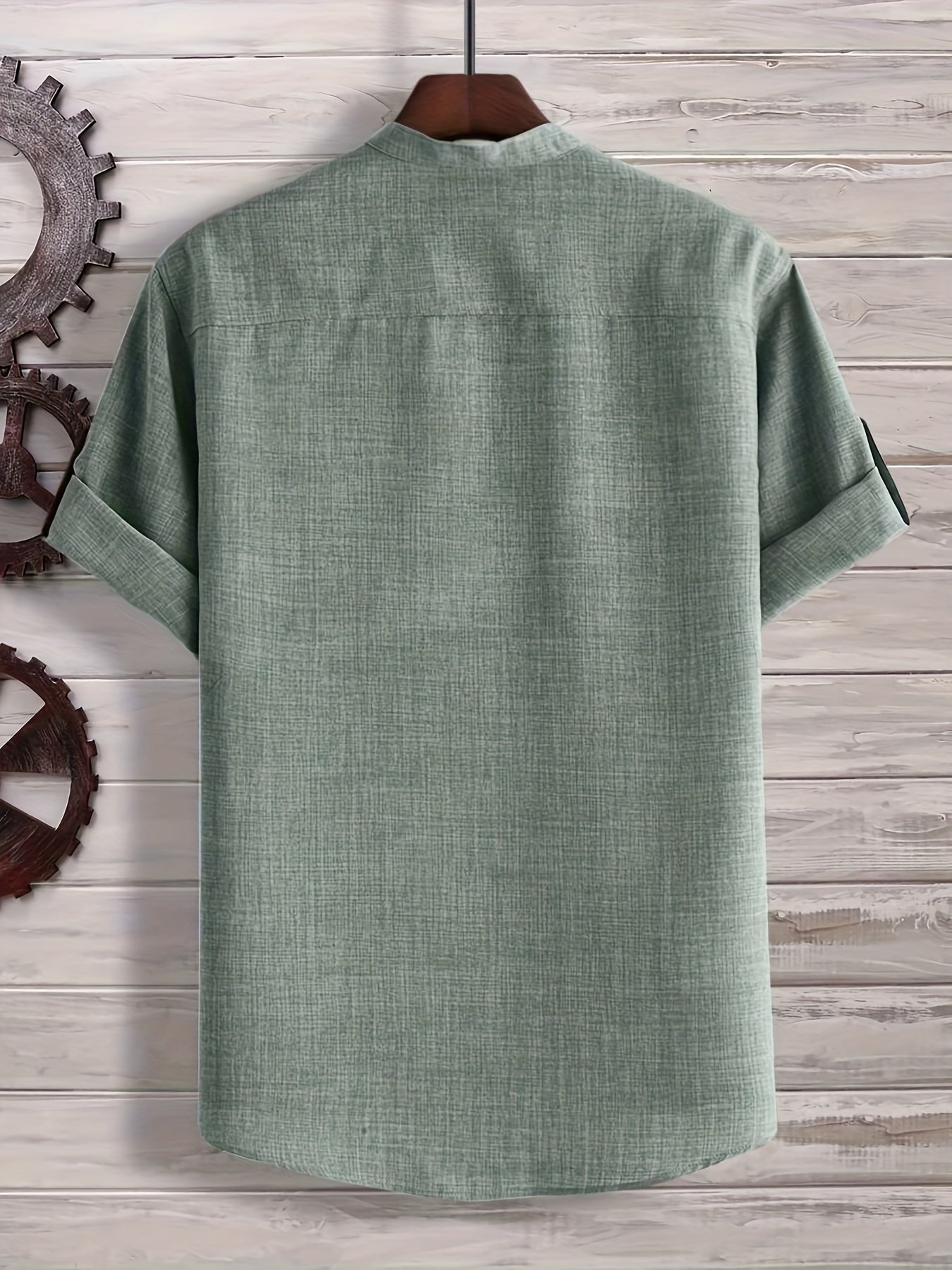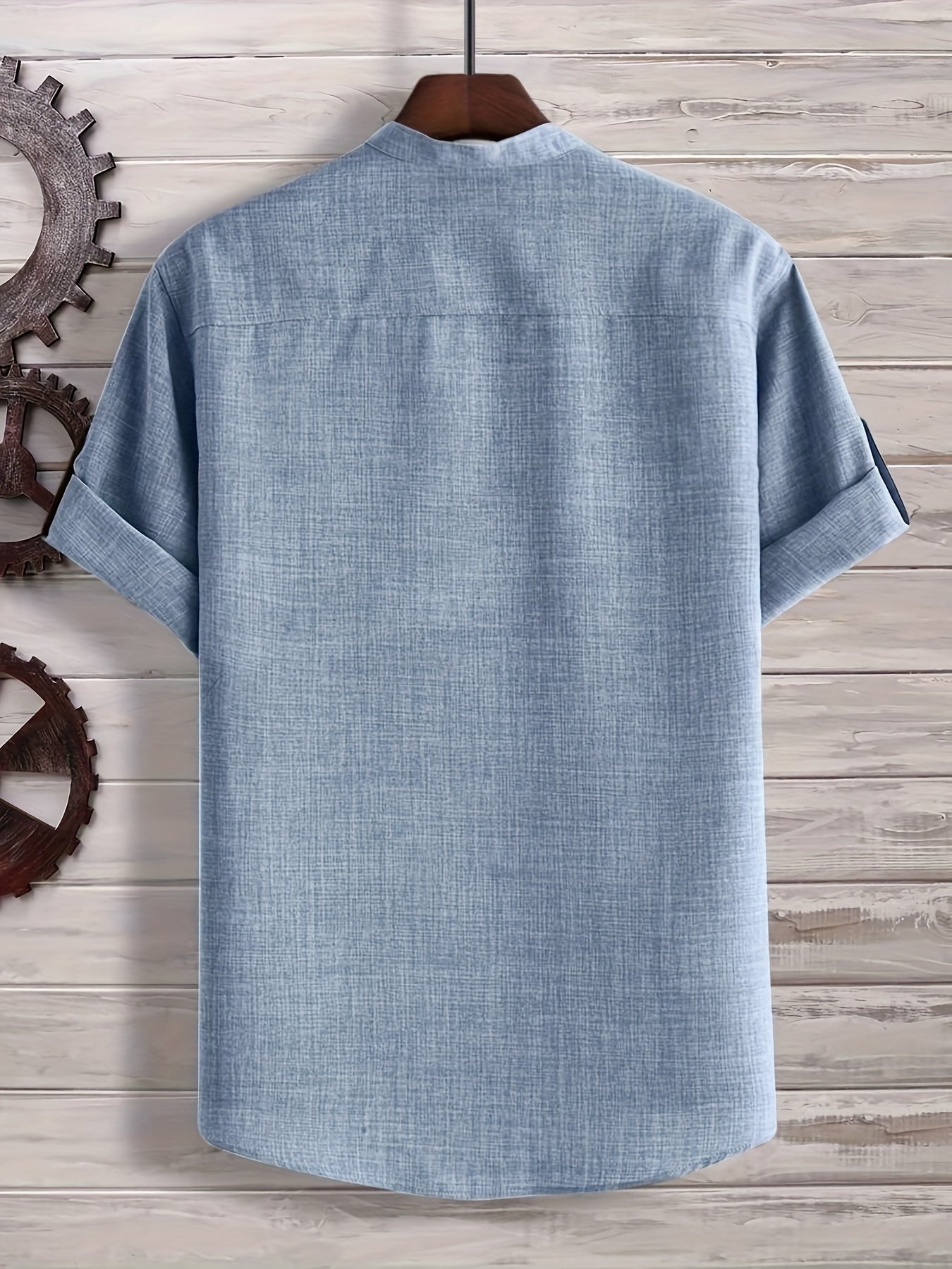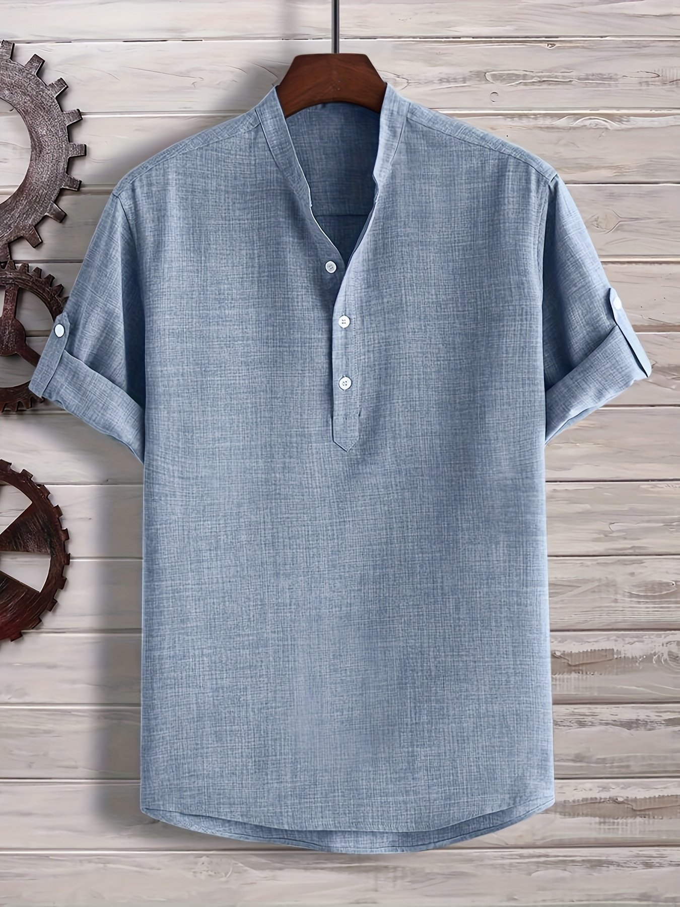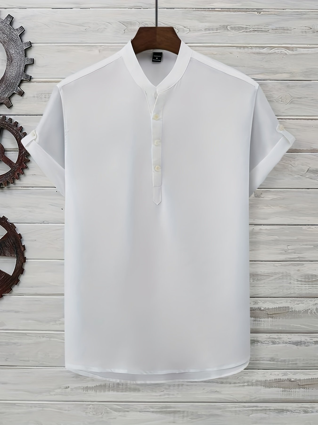 Men’S Solid Color Henley Collar Short Sleeve Shirt, Plus Size