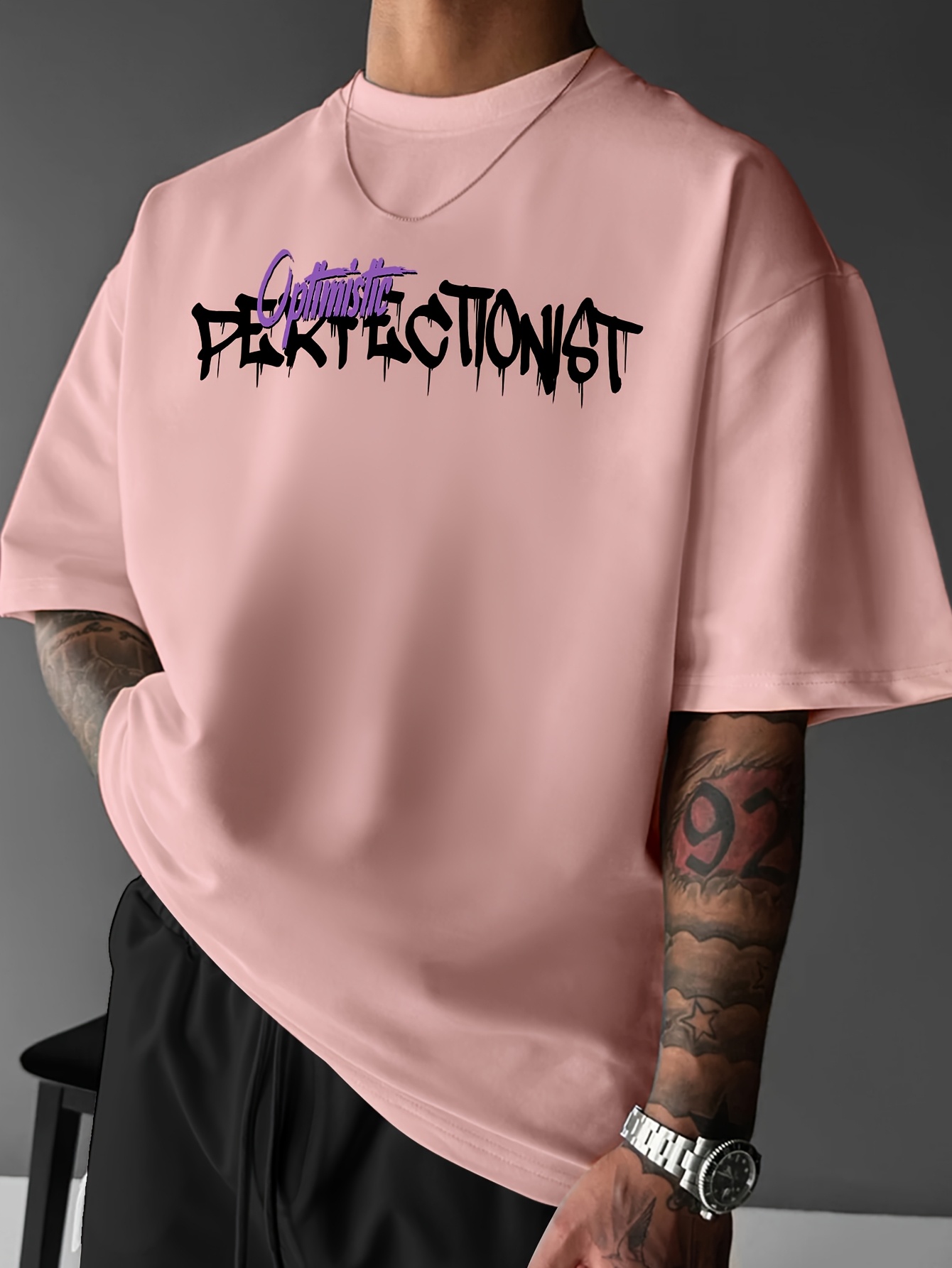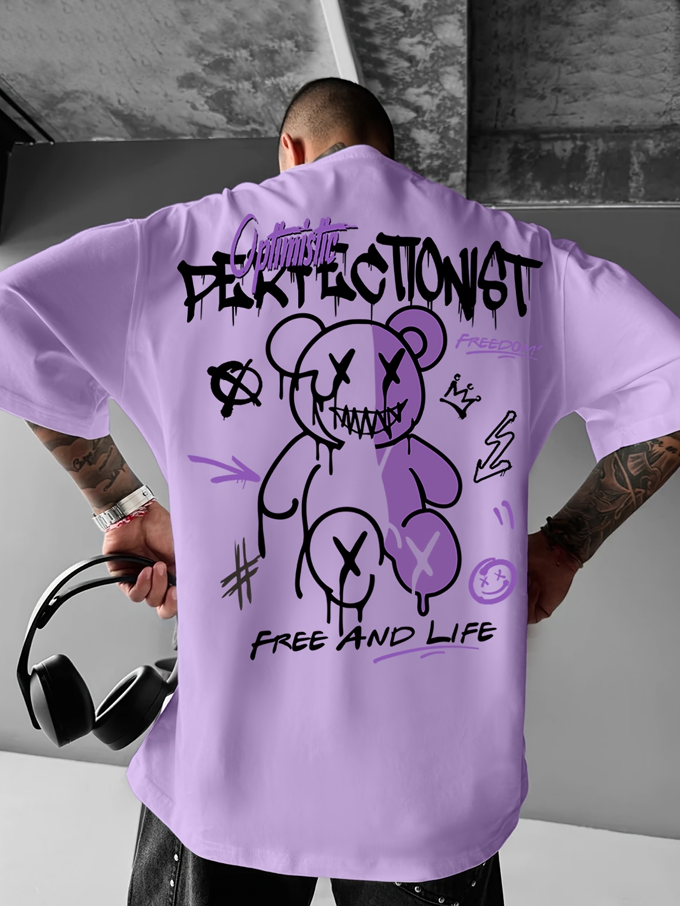 Men’S Streetwear Graphic T-Shirt – Loose Fit Round Neck Summer Tee With Bold “Perfect Not” Bear & Hearts Design, Light Blue Casual Urban Fashion Top For Casual Attire, Streetwear Fashion | Bold Graphic Tee | Comfortable Fit, T Shirt Stylish