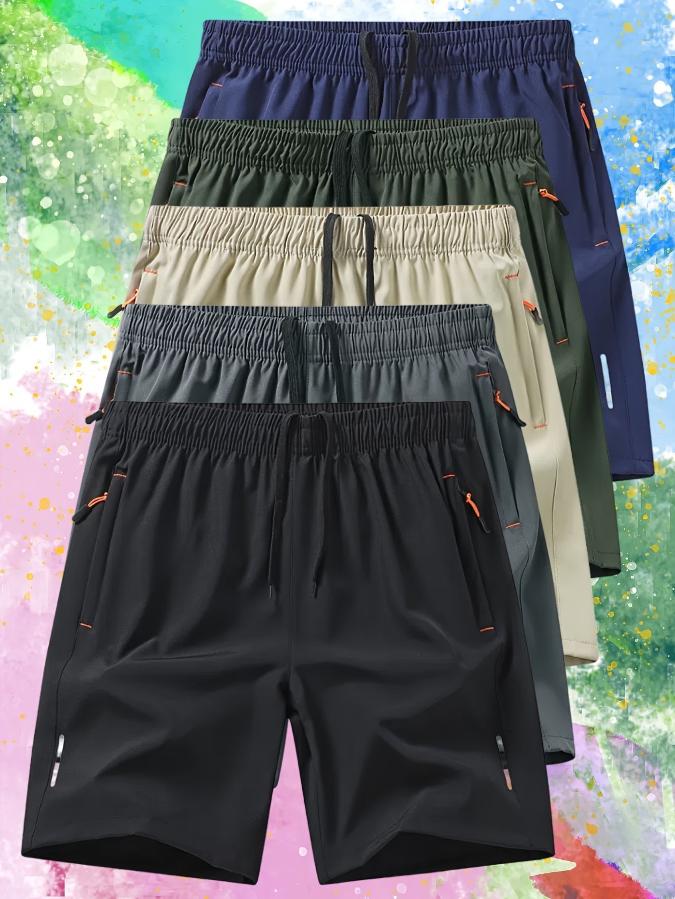 1Pc Men’S Breathable Knit Athletic Shorts With Elastic Waist & Zipper Pockets – Moisture-Wicking Workout Shorts For Running, Gym, Training, Beach – Multi-Color Options, Smooth Texture Fabric