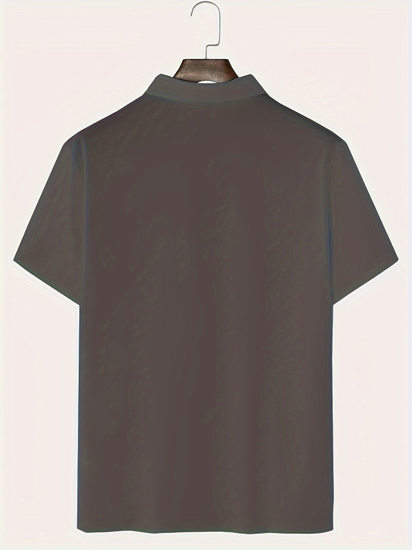 A Piece Ofplus-Size Men’S Loose Solid Color Henry Shirt, Round Neck Half-Button Short-Sleeved Shirt, Suitable For Summer Outdoor Activities, Plus Size