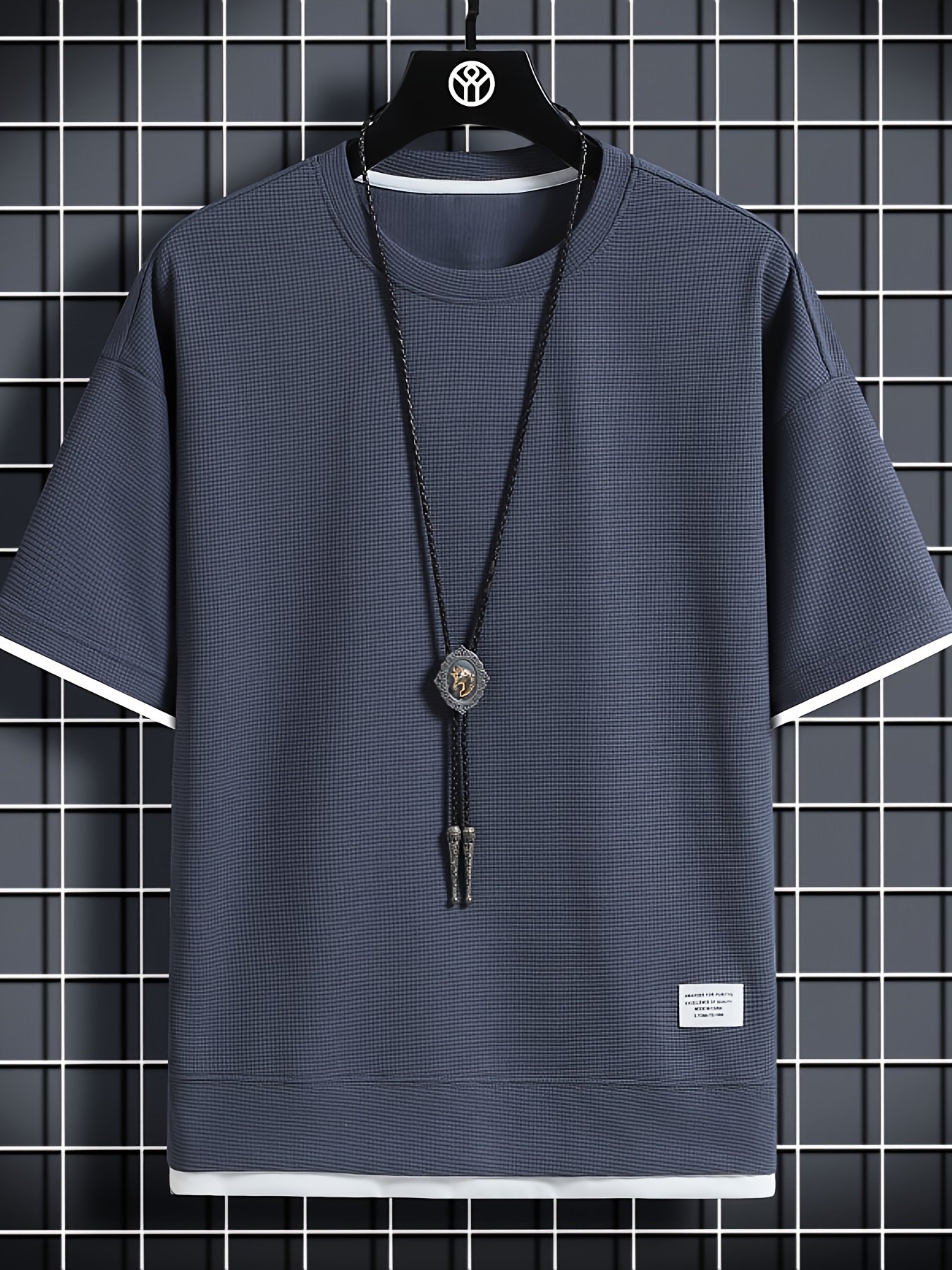 Men’S Waffle Solid Color Fake Two-Piece Design Solid Color Round Neck T-Shirt, Summer Casual And Comfortable T-Shirt, Daily Gym Exercise Running Men’S Top