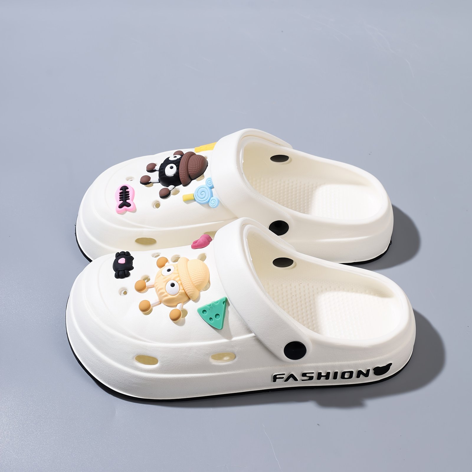Mid-Year, Summer New Arrivals, Japanese And Korean Fashion Women’S Cute Detachable Coal Ball Eva Hole Shoes, Adorable Coal Ball Charms, Comfortable Casual Versatile, 5Cm Thickened Sole, Rotatable Back Strap For Dual Wear, Easy To Put On/Off, Anti-Slip Durable Sole, Safe Walking Non-Skid, Suitable For Indoor, Outdoor, And Parties