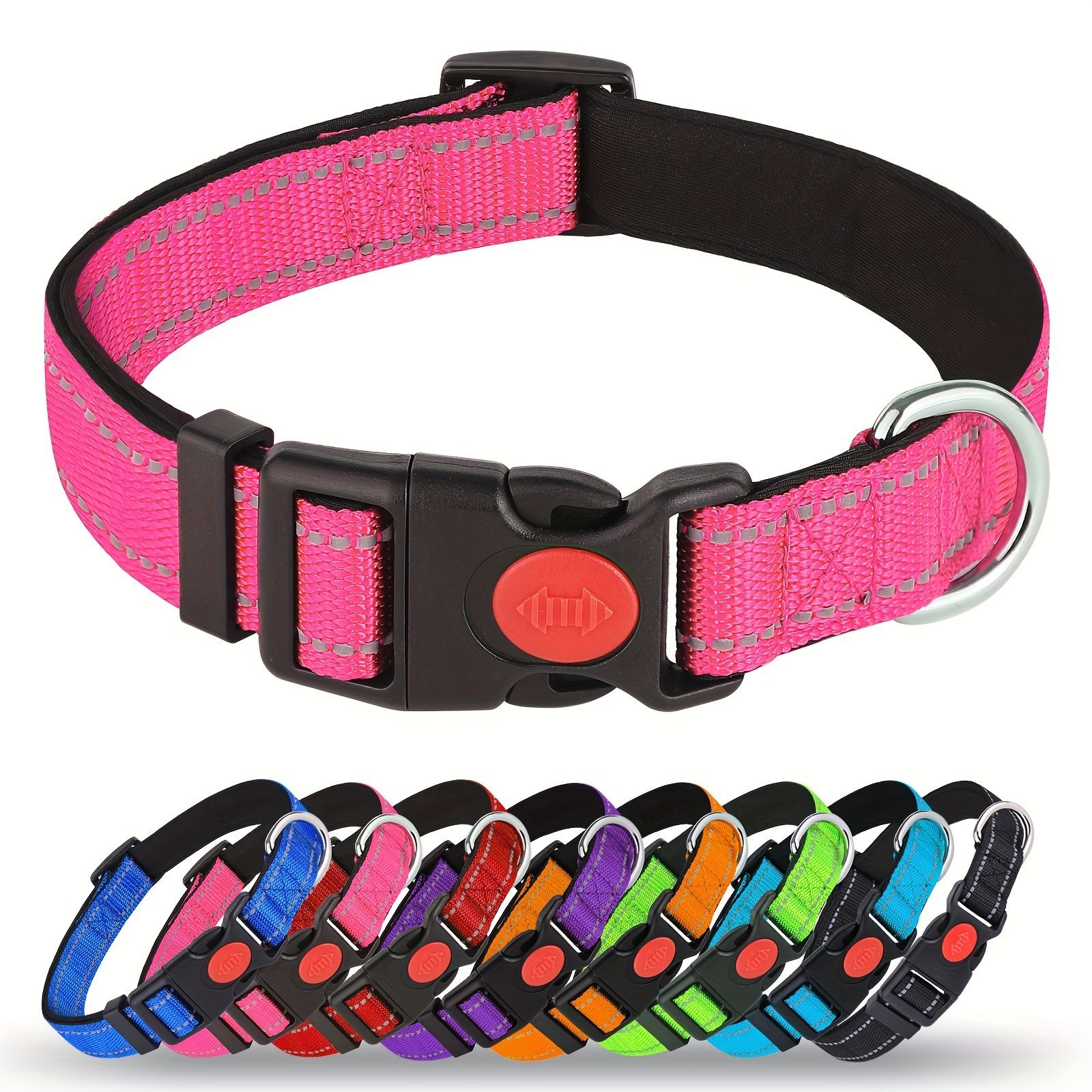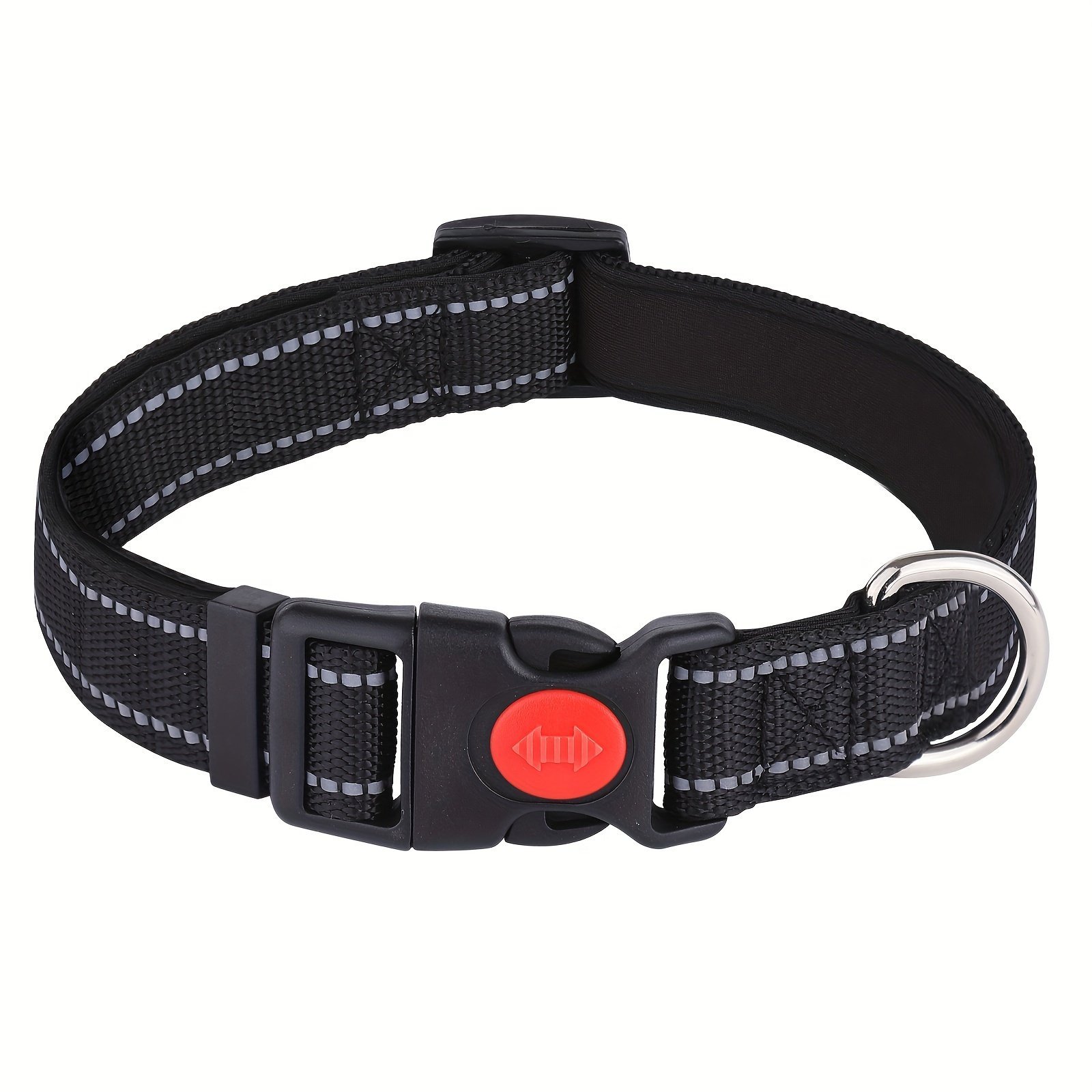 Mitooe 1Pc Reflective Dog Collar With Safety Locking Buckle, Adjustable Soft Neoprene Padded, Breathable Nylon, Striped Pattern, Polyester Material For Small To Large Dogs