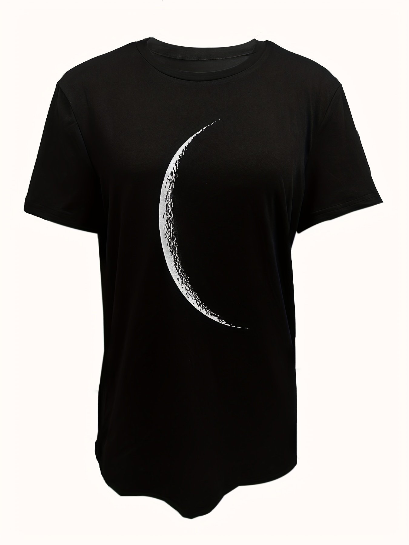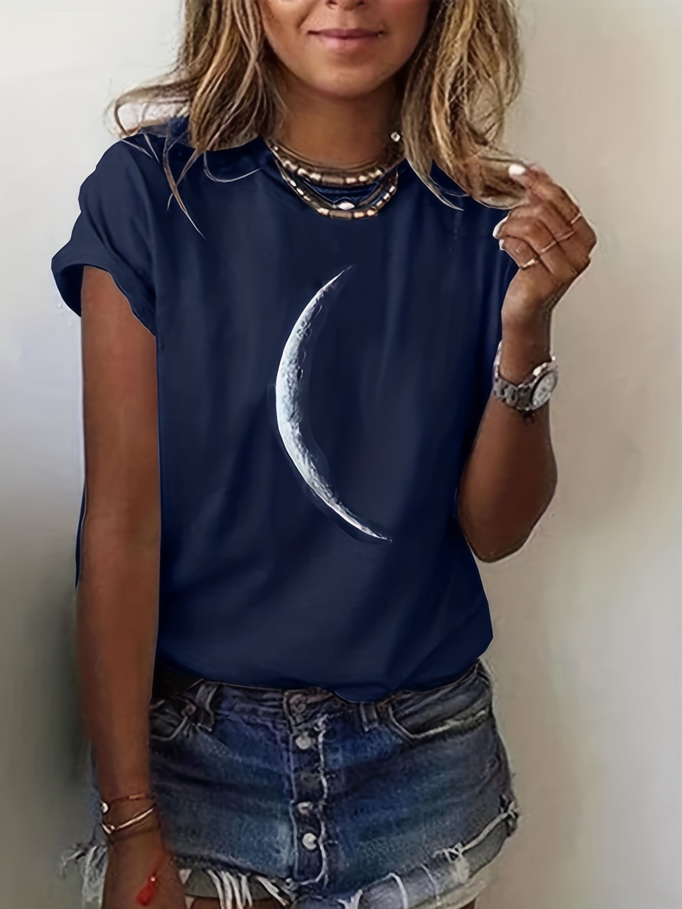 Moon Print Crew Neck T-Shirt, Casual Short Sleeve T-Shirt For Spring & Summer, Women’S Clothing