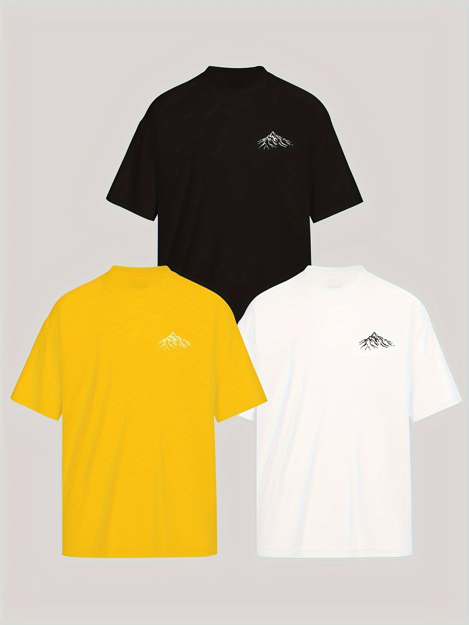Mountain Print Men’S Round Neck Short Sleeve Tee Fashion Regular Fit T-Shirt Top For Spring Summer Holiday