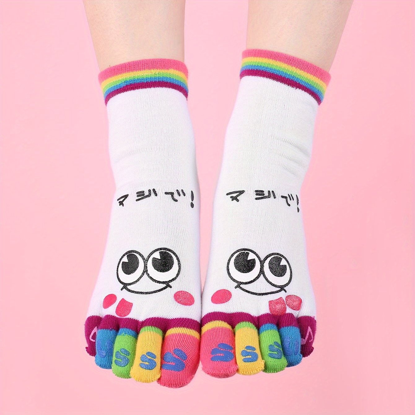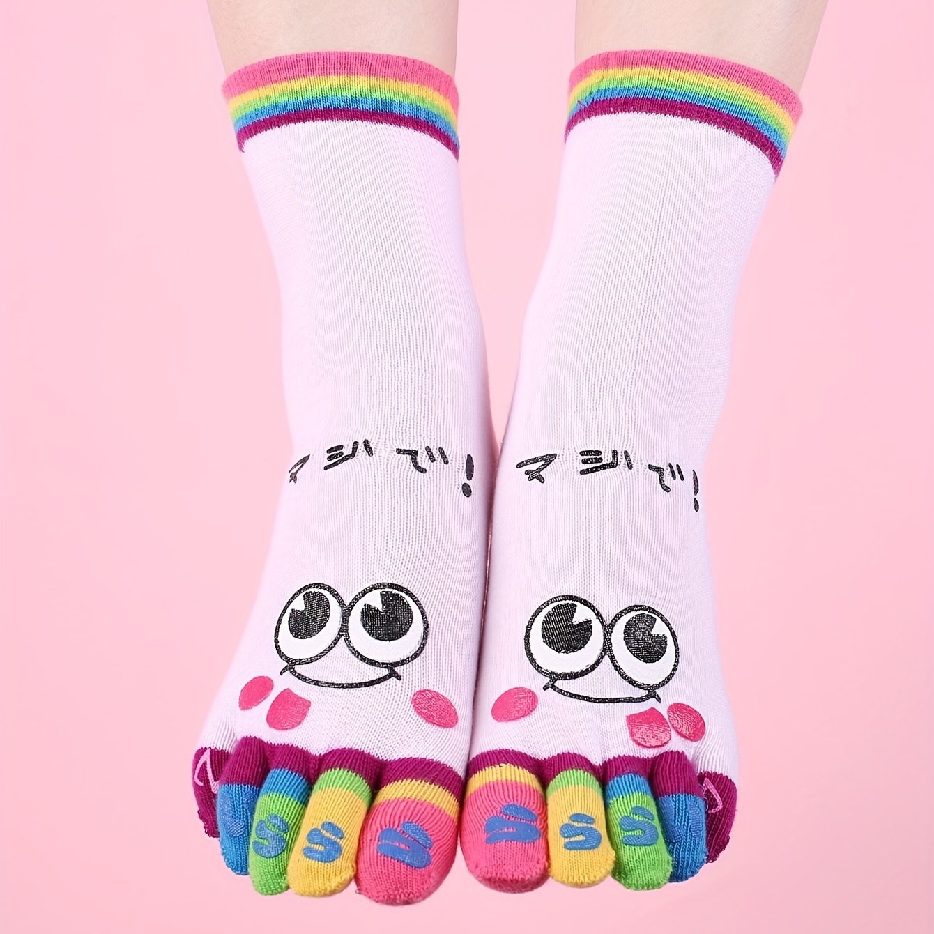 Music Festival Cartoon Print Toe Socks, Colorful Five Finger Sports Socks For Running Athletic, Women’S Stockings & Hosiery