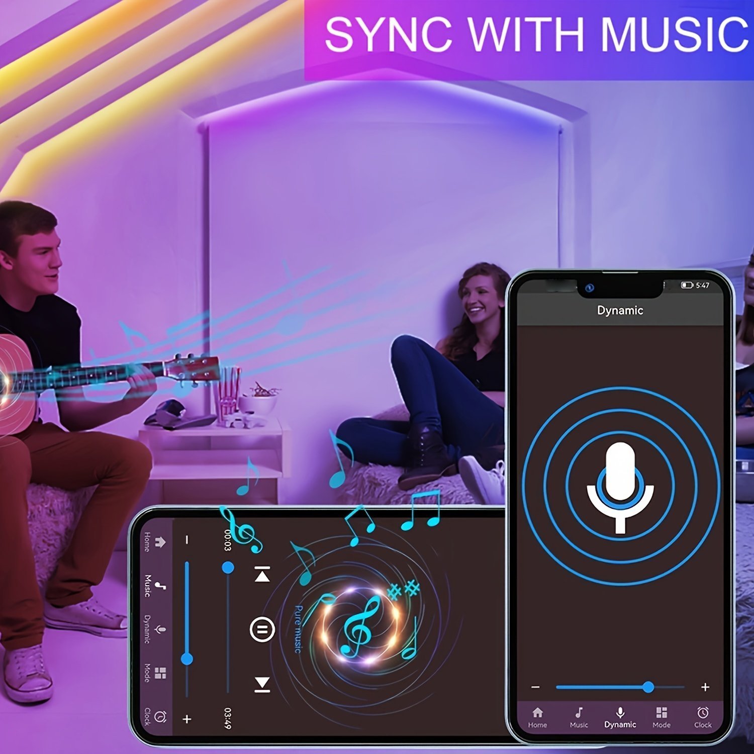 NBBUFF Smart LED Music Sync Light Strip with App & Remote Control, RGBW Color Changing Lights with Dynamic Effects, USB-Powered Party Lights for Home, TV, Bedroom, Christmas, Weddings, Compatible with Alexa/ Assistant, Energy-Efficient LED Lights