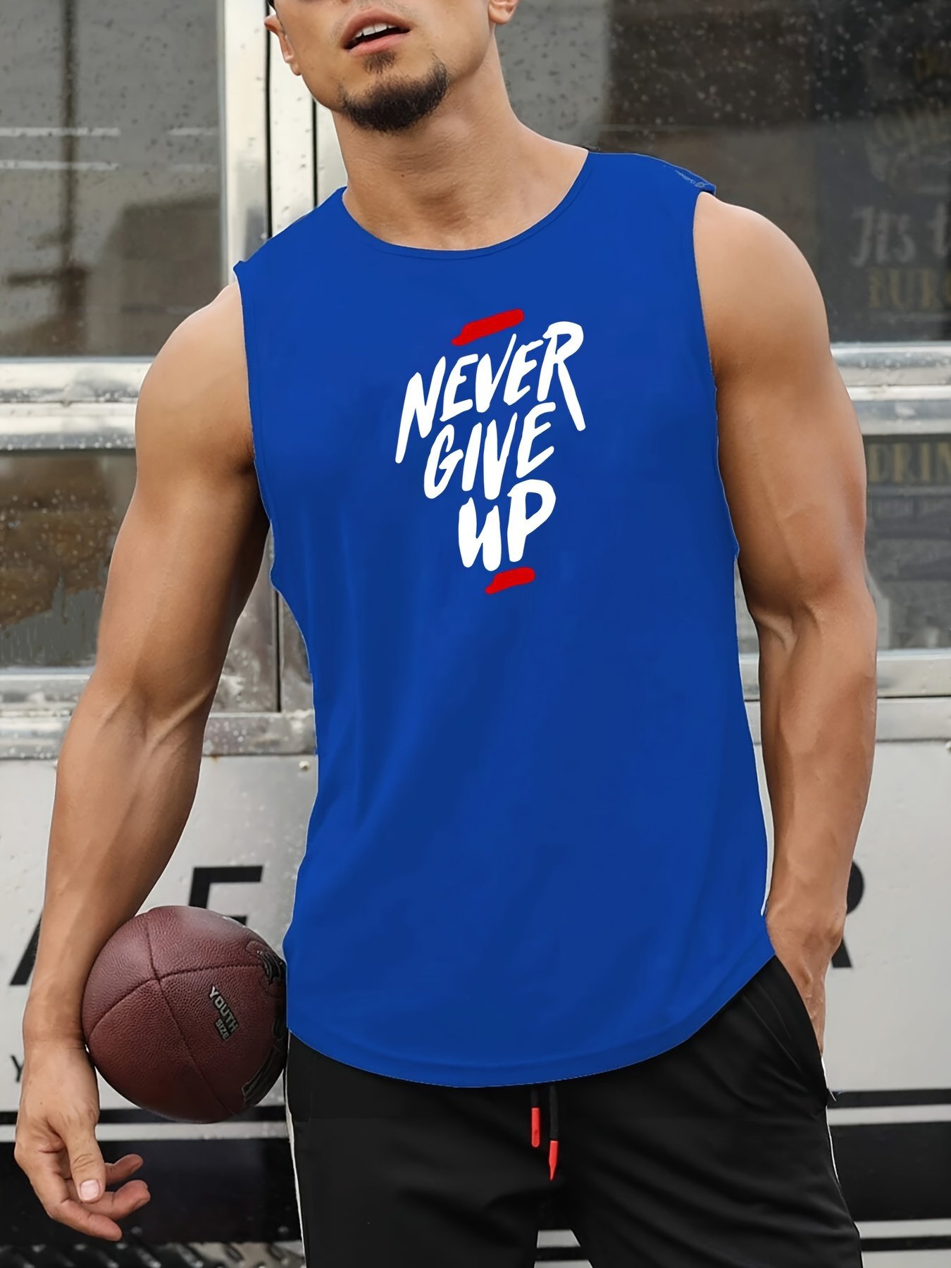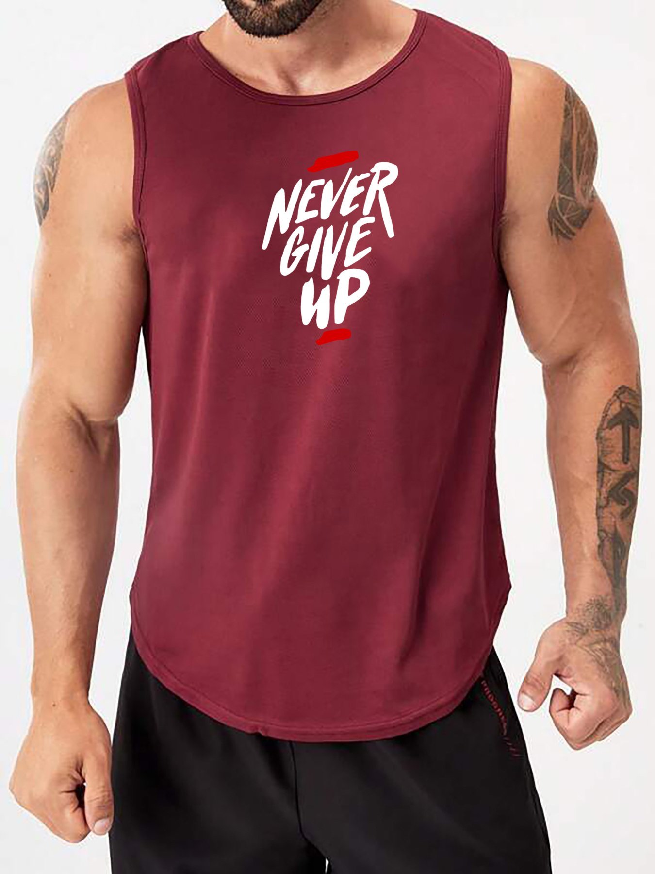 “Never Give Up” Print Comfy Breathable Tank Top, Men’S Casual Stretch Sleeveless T-Shirt For Summer Gym Workout Training Basketball