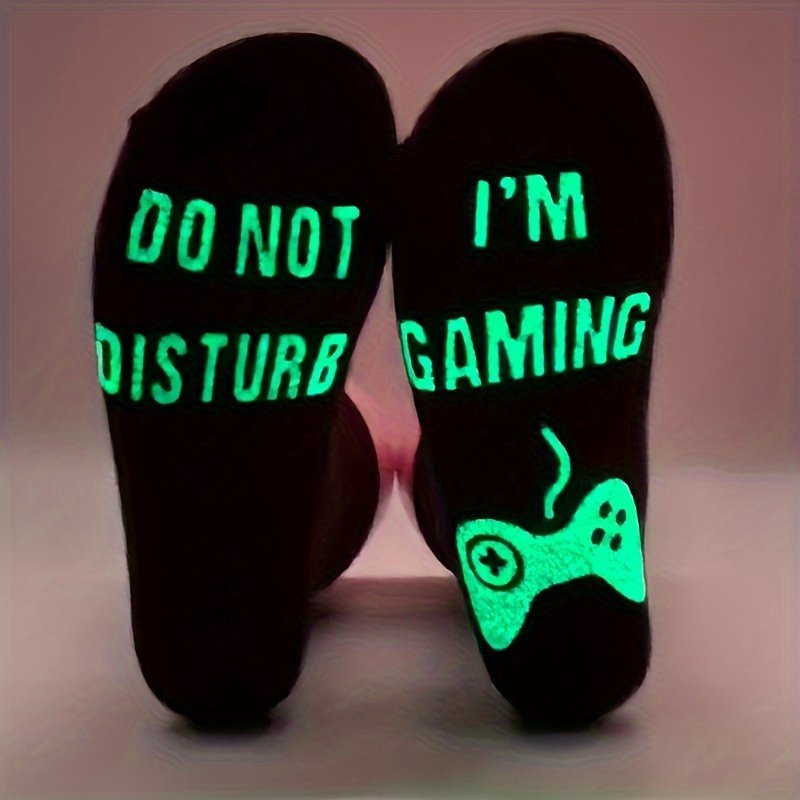 Pair Of Black Anti-Slip Cotton Socks ‘Glow-In-The-Dark Gaming Socks’ For Men