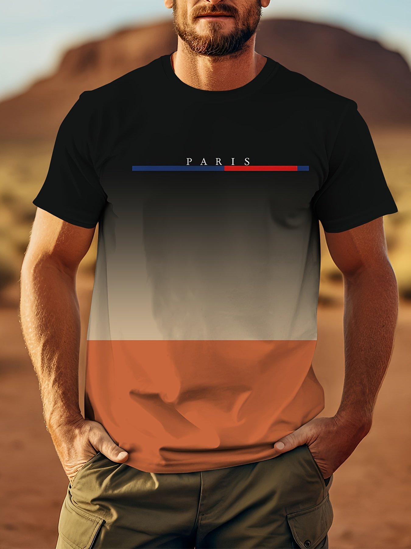 Paris Inspired Fashion Graphic Men’S T-Shirt, Casual Crew Neck Short Sleeve Tee, 100% Polyester Slight Stretch Knit Fabric, All-Season Comfort Fit Pullover For Men
