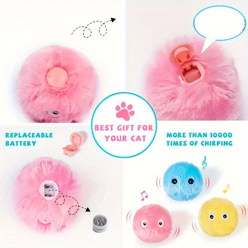 Petgravity Interactive Cat Plush Toy Ball With Squeaky Sound & Motion – Fluffy Fuzzy Soft Training Ball With Expressive Eyes, Multi-Color Options (Pink, Yellow, Blue) — Safe For All Cat Breeds & Sizes, Indoor Play