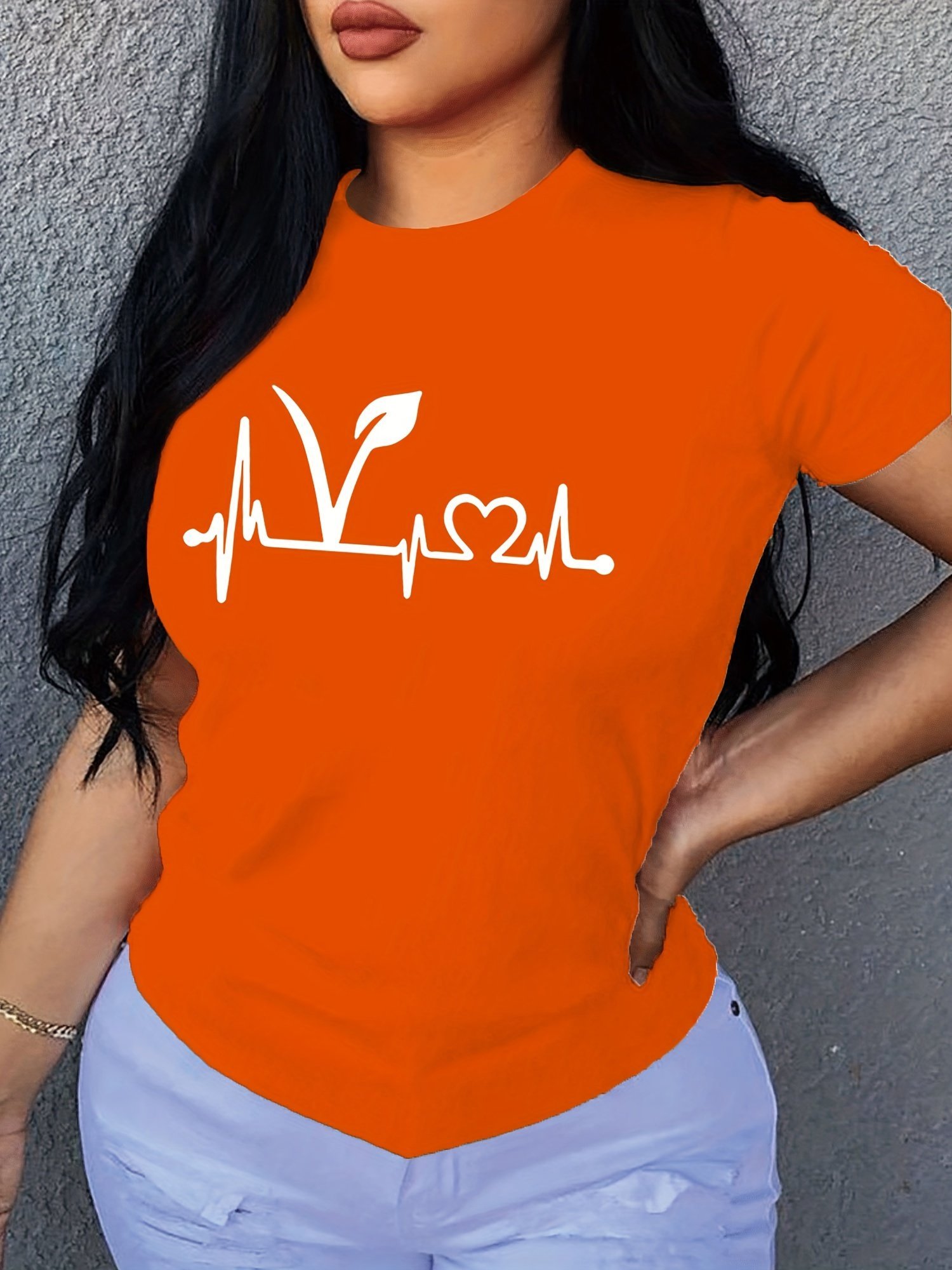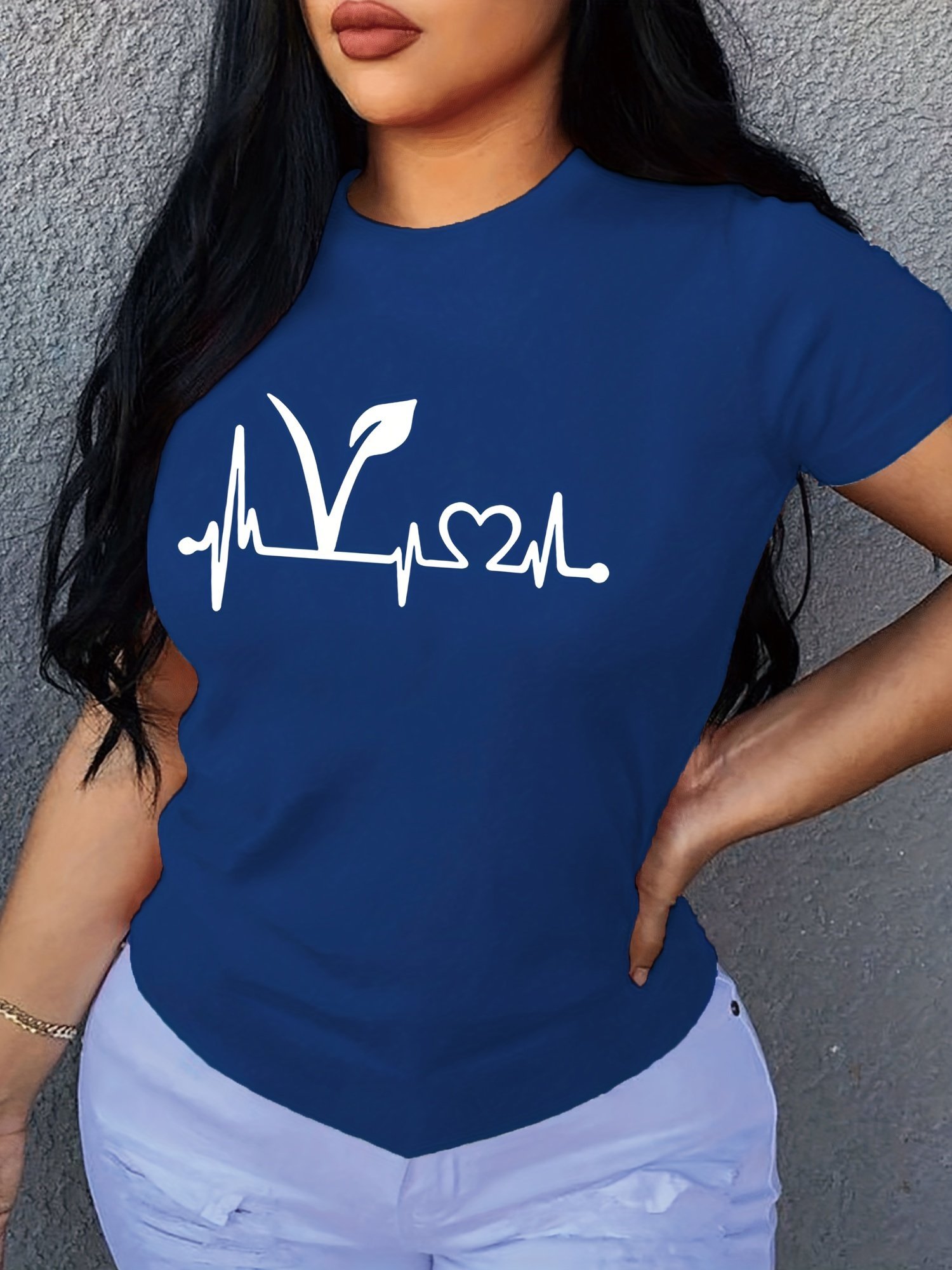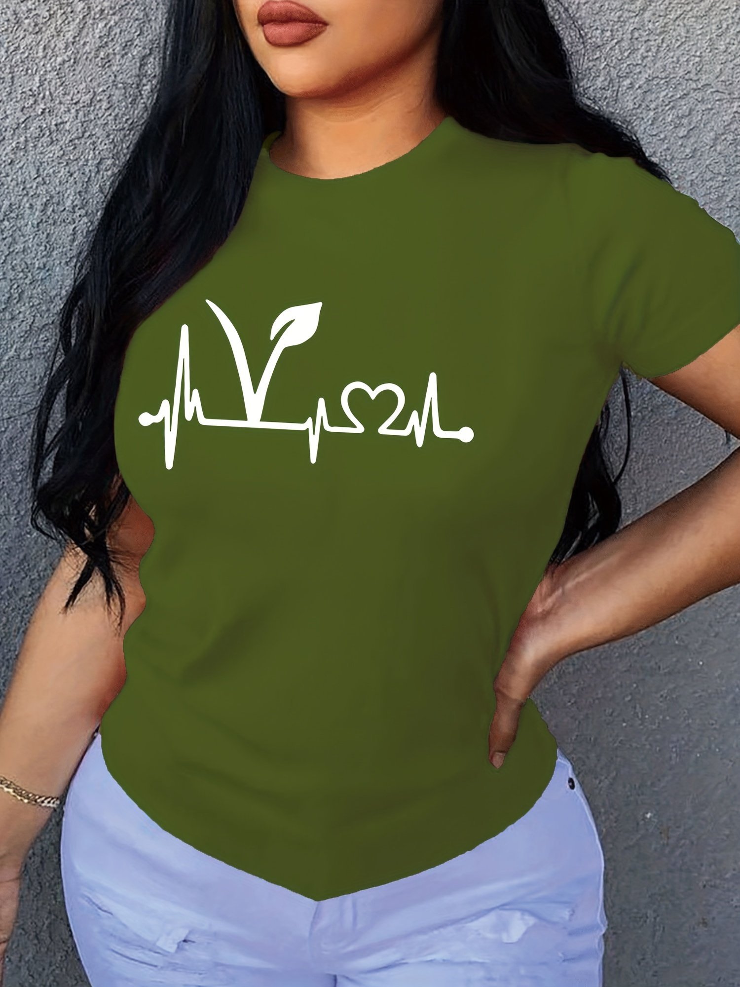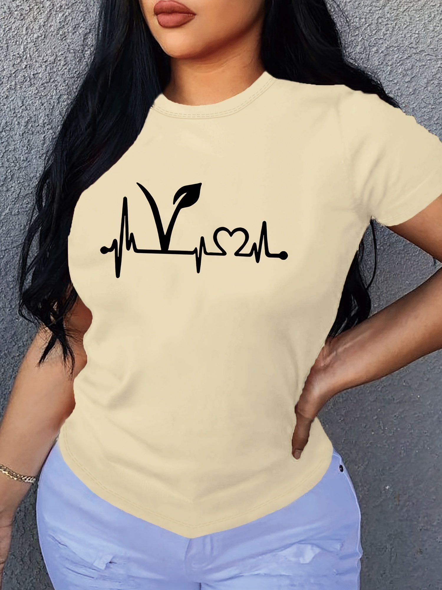 Plant Print Short Sleeve T-Shirt, Crew Neck Casual Top For Summer & Spring, Women’S Clothing
