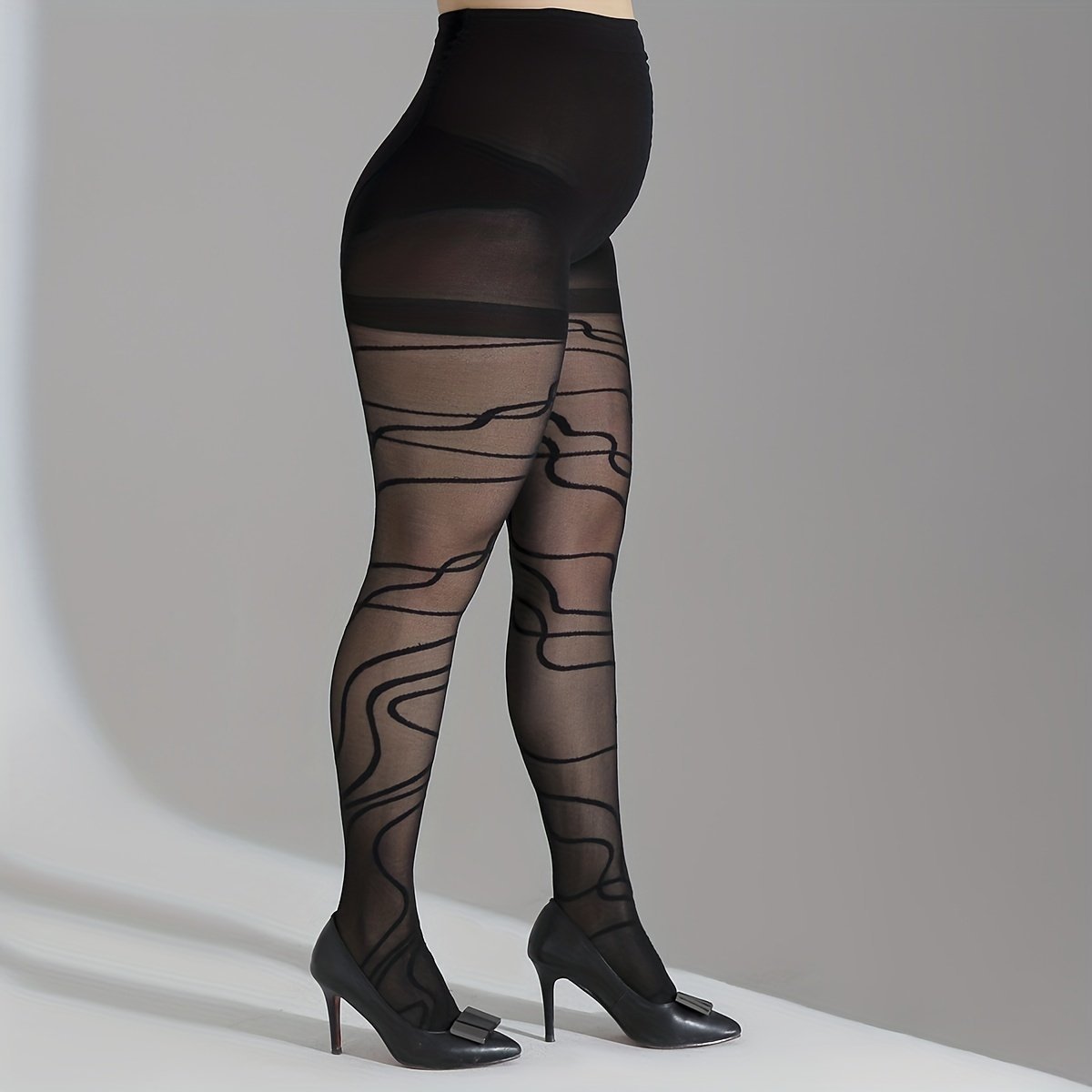 Plus Size Casual Stockings, Women’S Plus Fluid Jacquard High Rise Stretchy Pantyhose