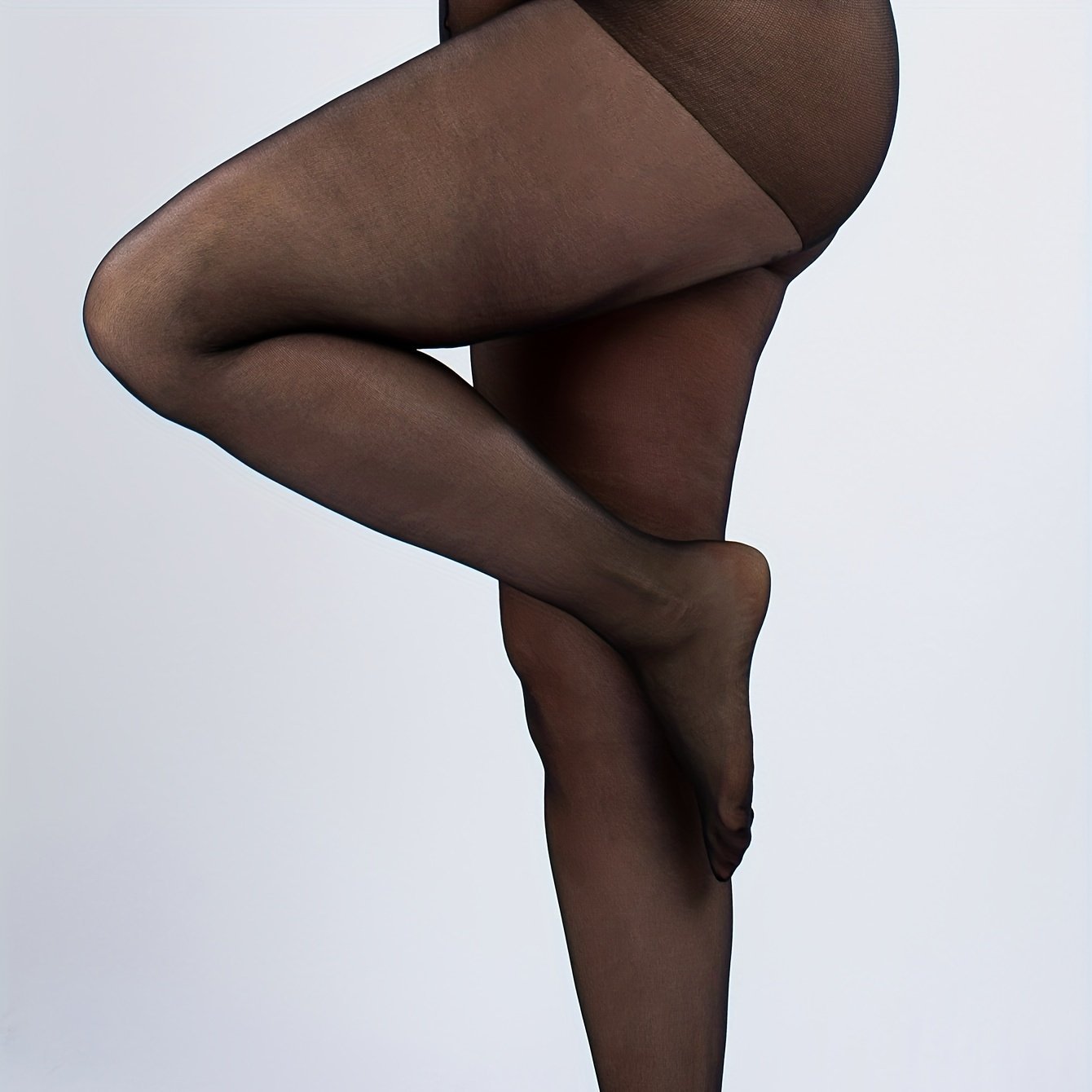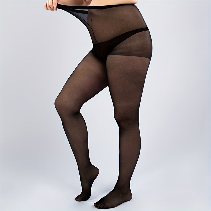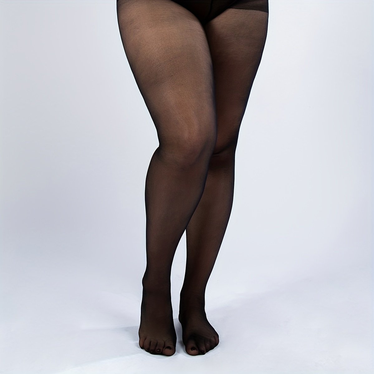 Plus Size Casual Stockings, Women’S Plus Solid Semi Sheer High Rise Pantyhose Stockings