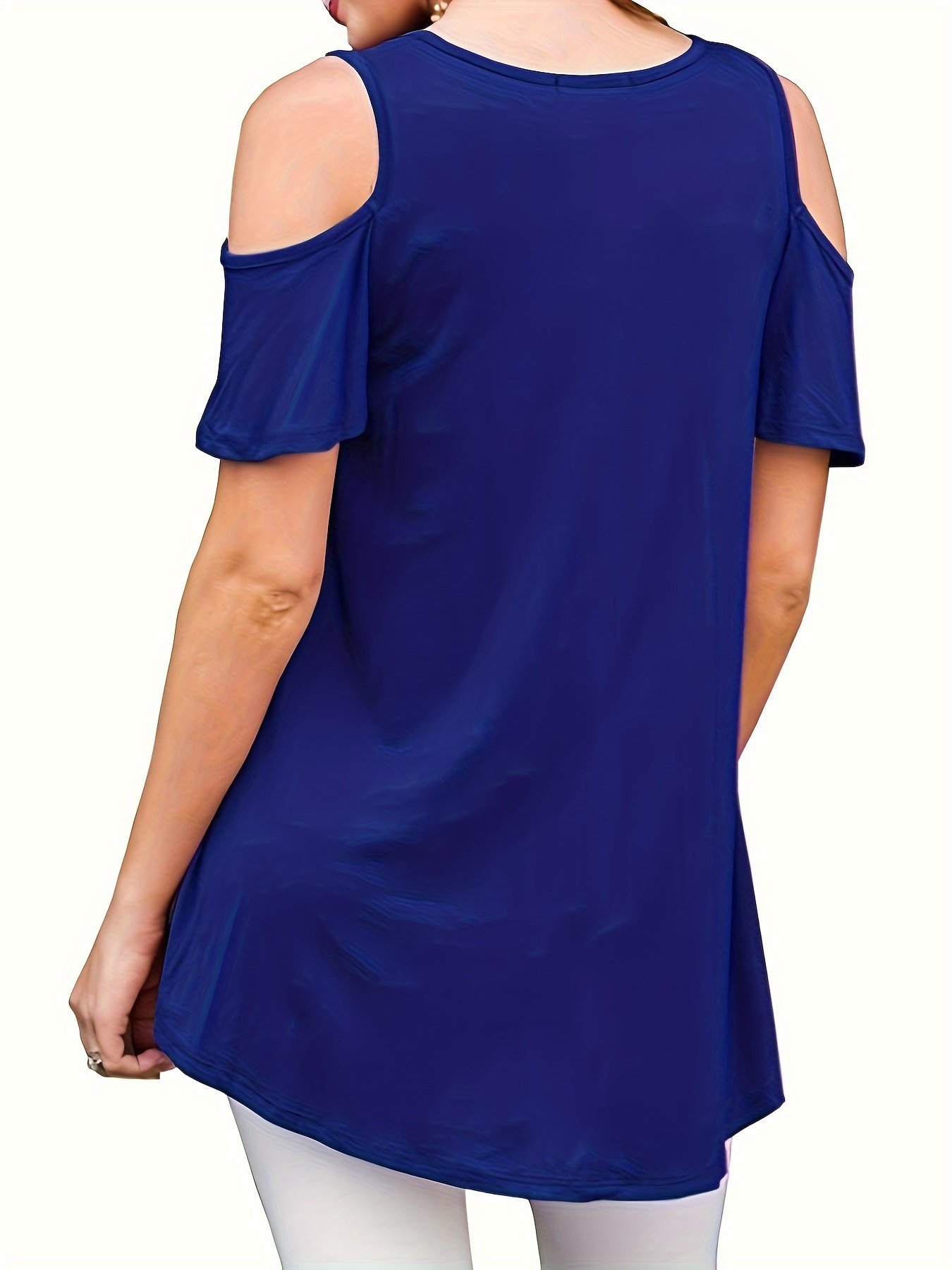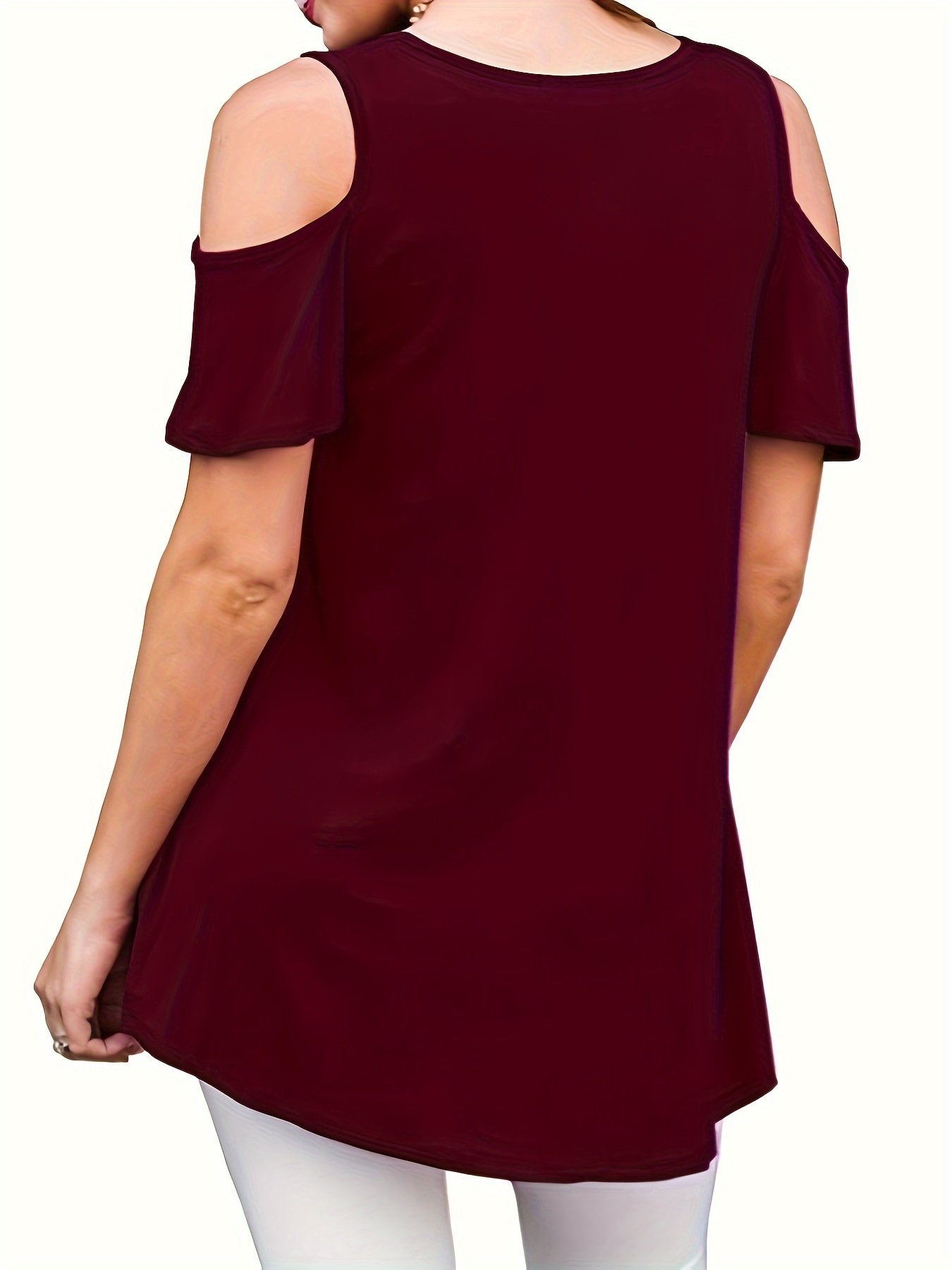 Plus Size Cold Shoulder T-Shirt, Casual Crew Neck Short Sleeve T-Shirt, Women’S Plus Size?Clothing