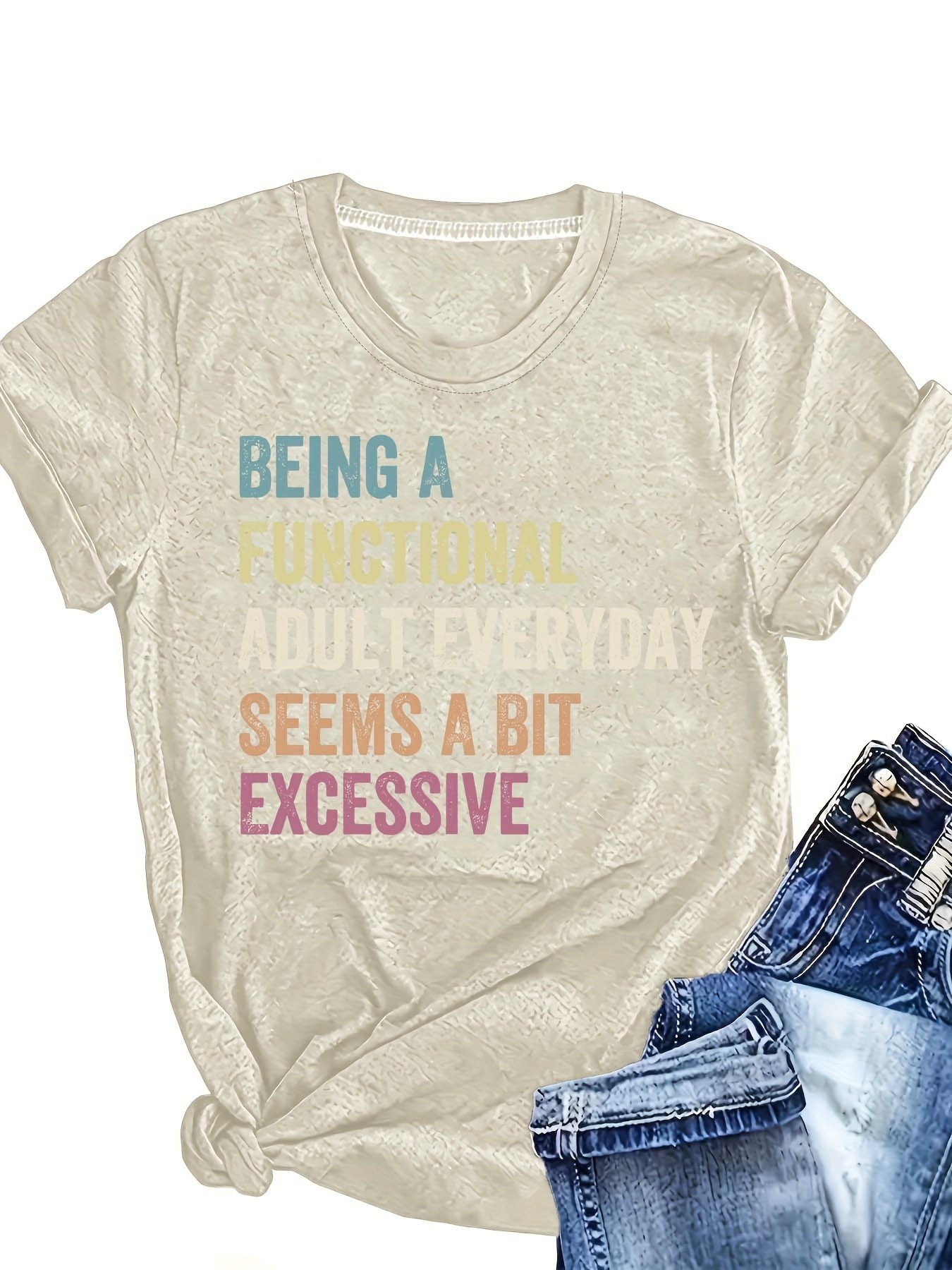 Plus Size Functional Letterprint T-Shirt, Casual Crew Neck Short Sleeve T-Shirt For Spring & Summer, Women’S Plus Size Clothing