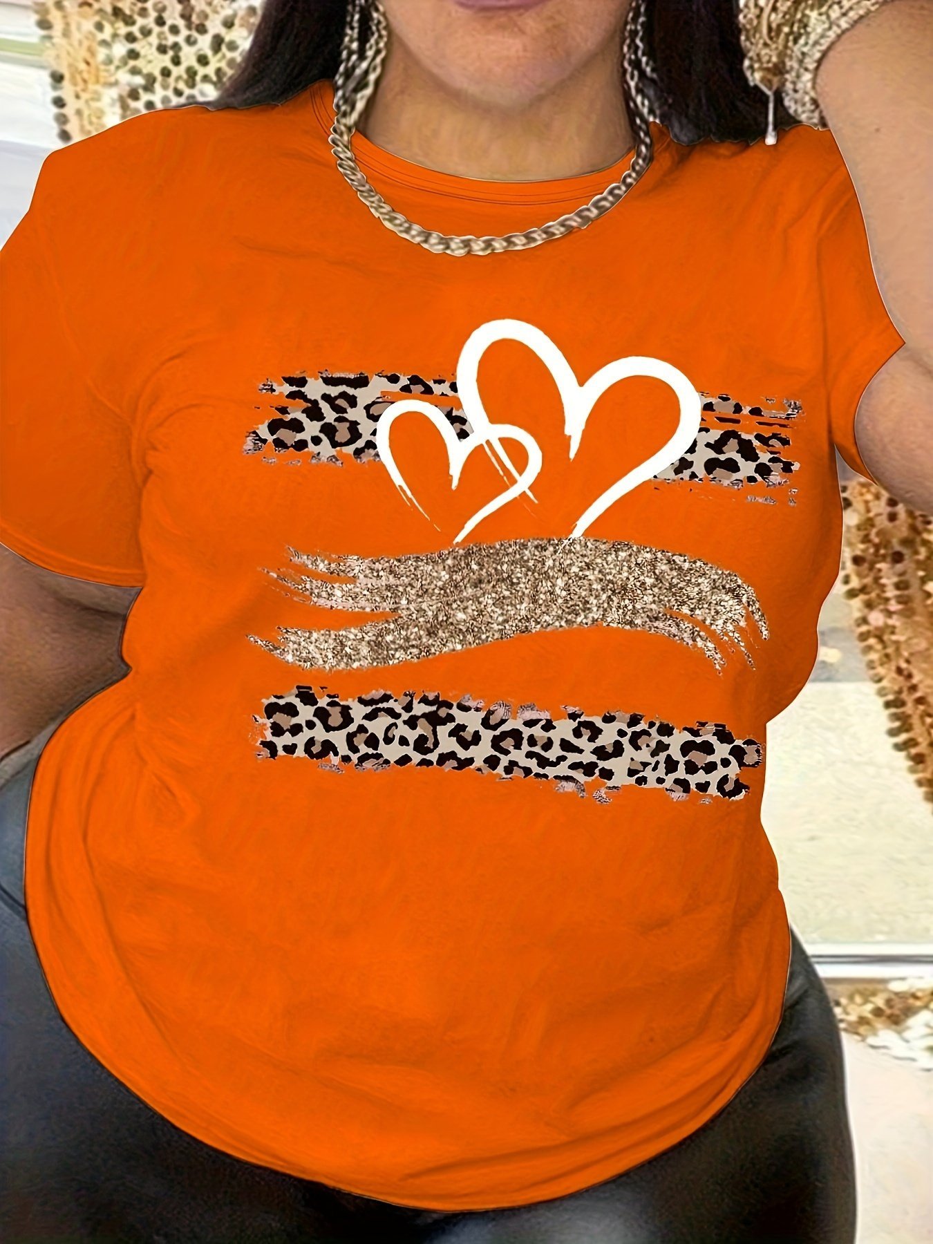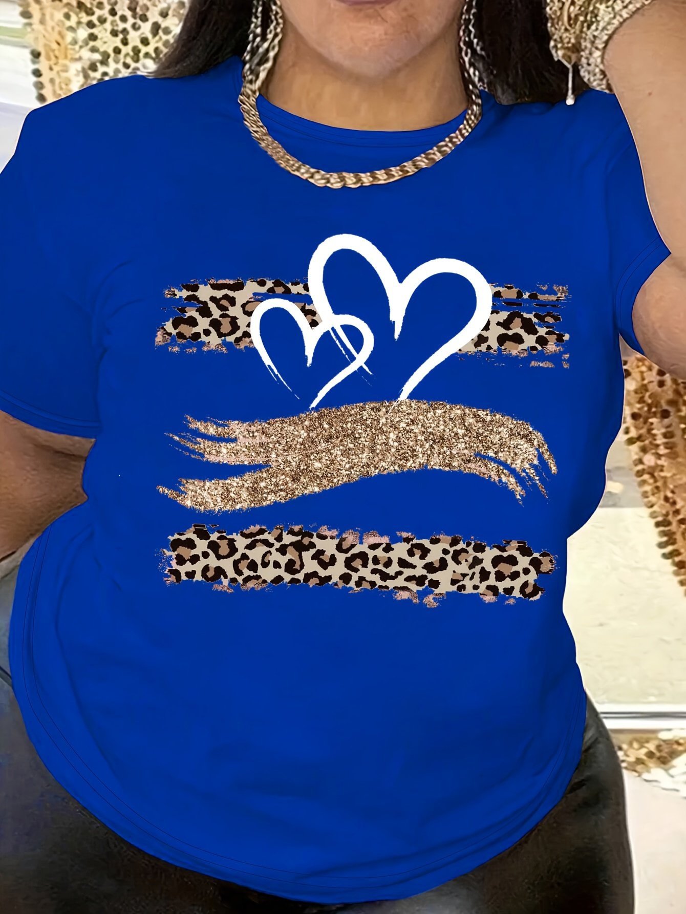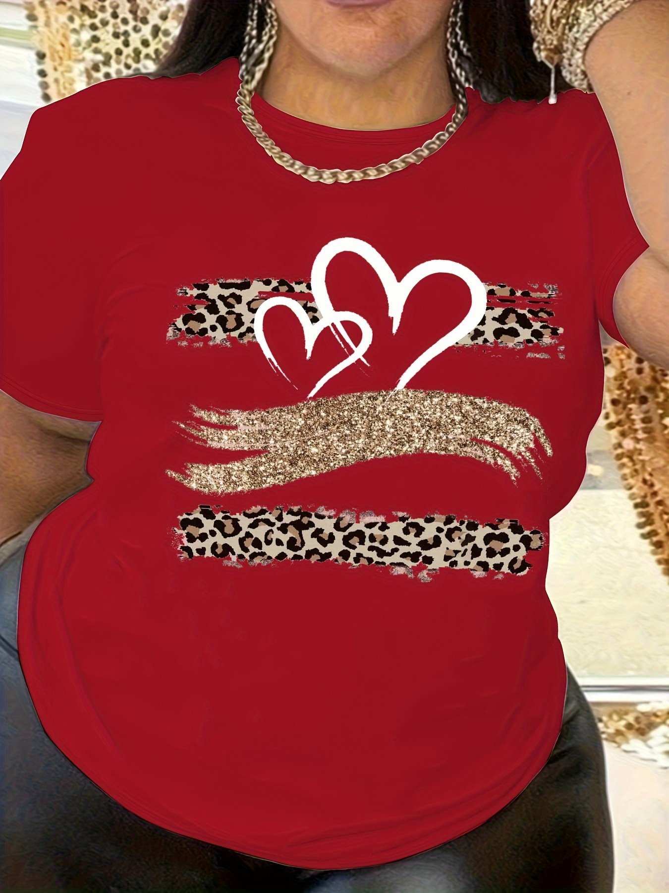 Plus Size Heart Print T-Shirt, Casual Crew Neck Short Sleeve T-Shirt, Women’S Plus Size?Clothing