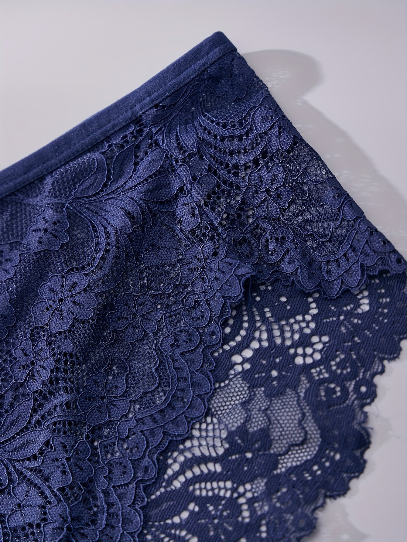 Plus Size High Stretch Polyamide Briefs With Contrast Lace Detail, Sexy Hollow Out Knit Fabric Panties For Women – 1Pc Pack