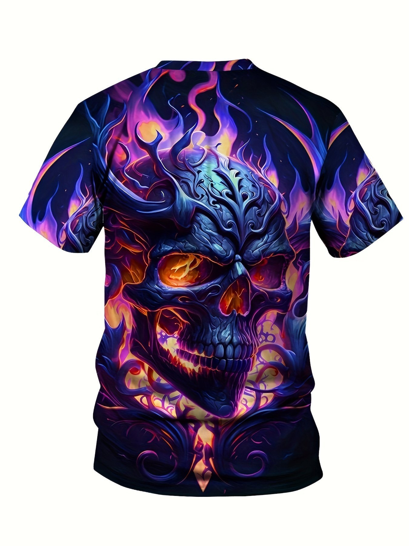 Plus Size Men’S 3D Glow Skull & Flames Graphic Print T-Shirt Funky Short Sleeve Tees For Summer, Halloween Men’S Clothing