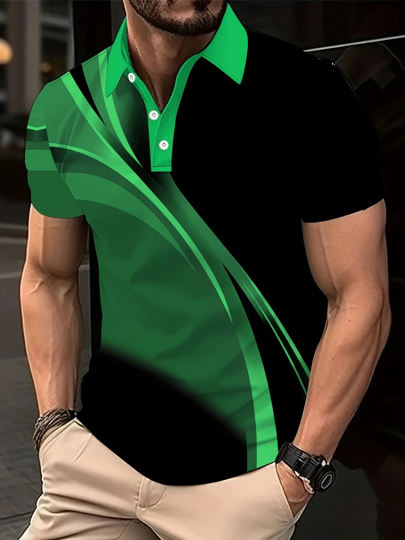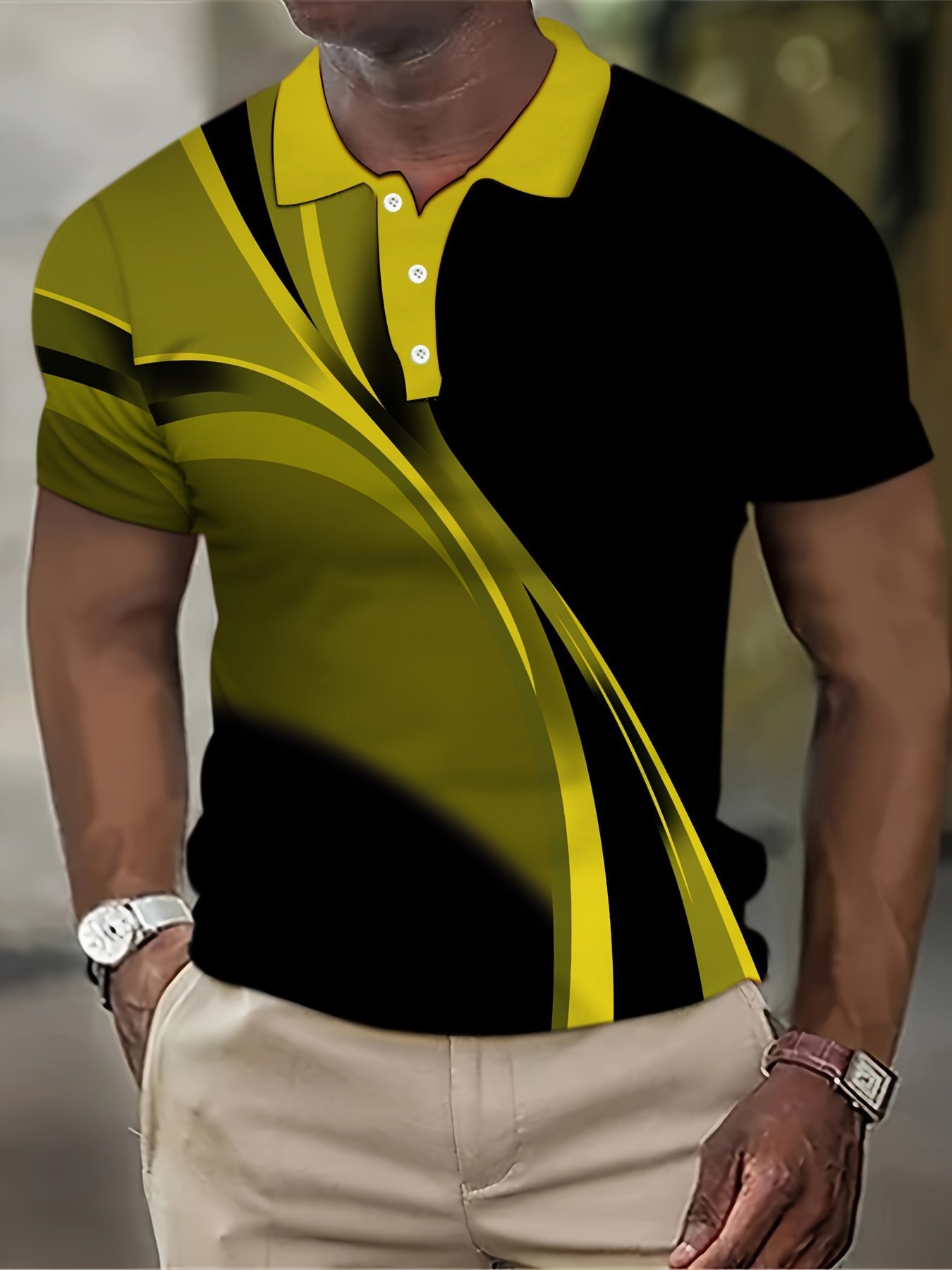 Plus Size Men’S 3D Stripes Pattern Graphic Print Golf T-Shirt For Summer, Trendy Casual Short Sleeve Tennis Tees