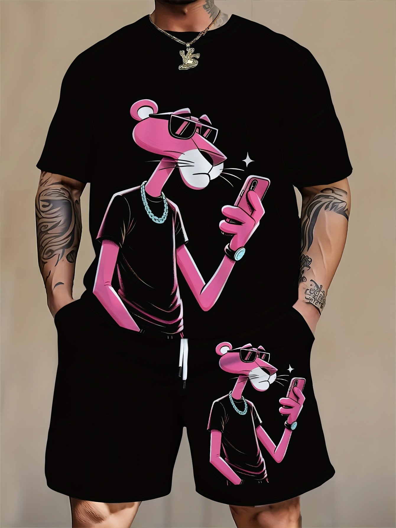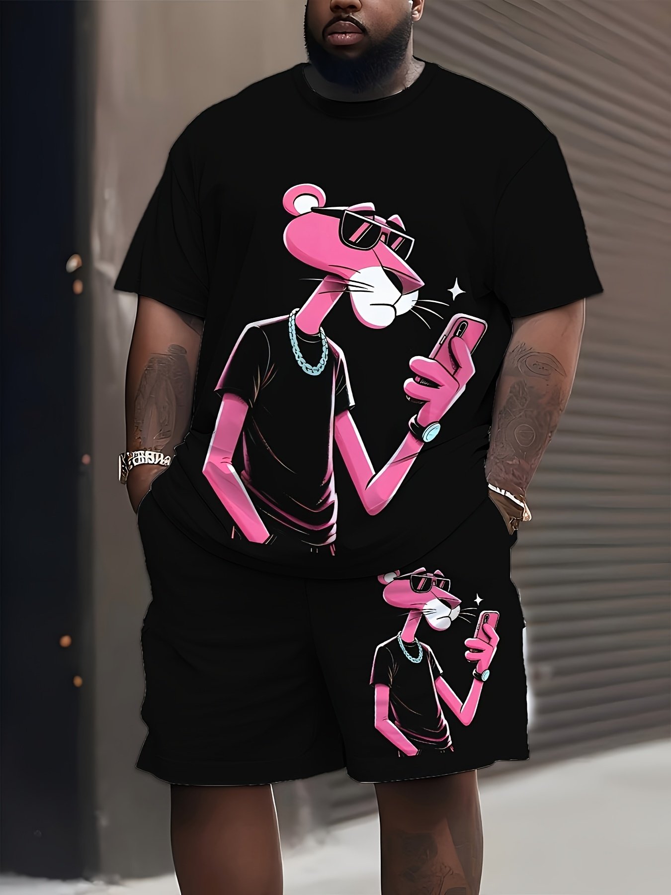 Large Size Men’S Casual T-Shirt And Shorts Set, Plus Size
