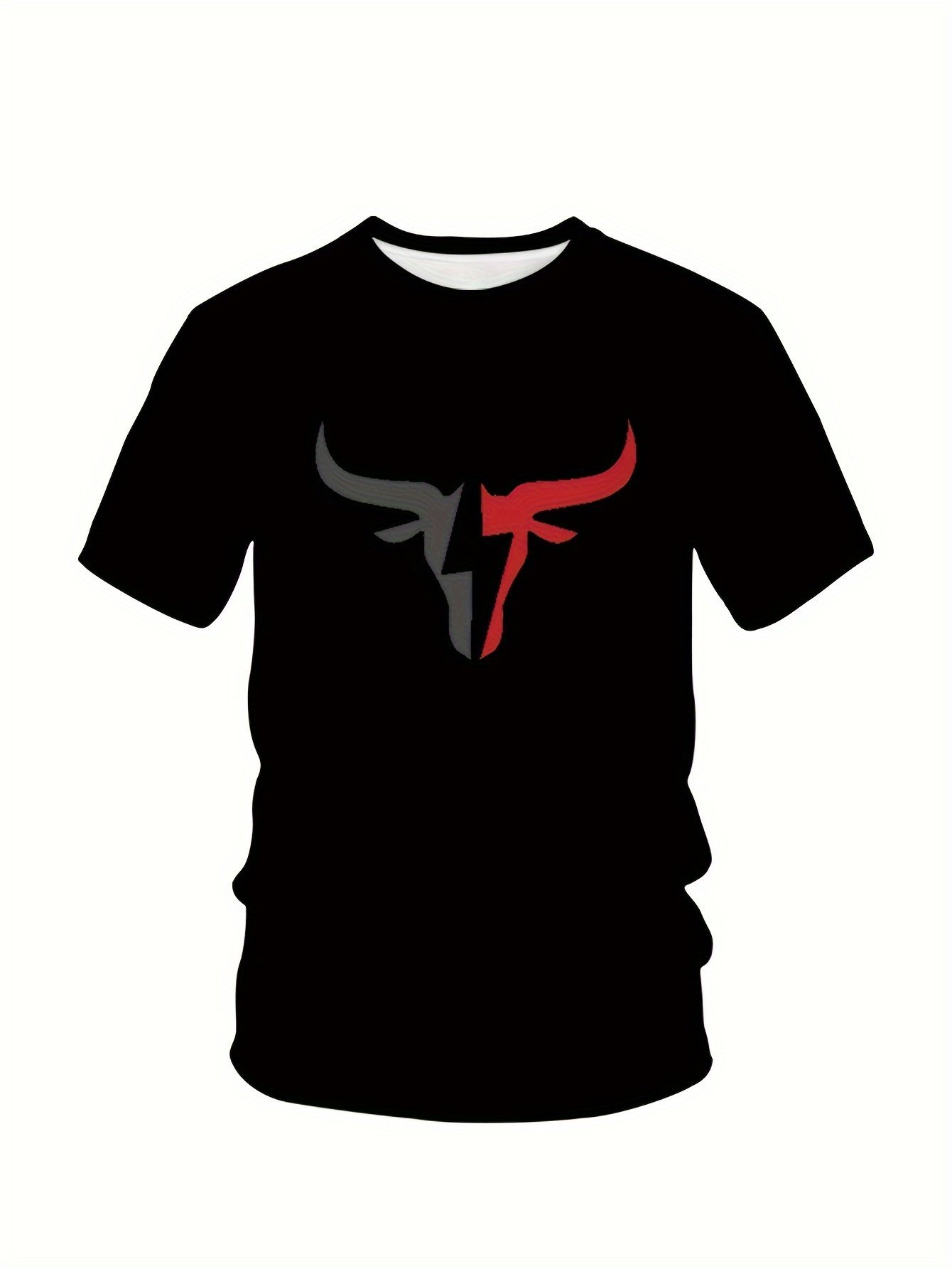 Plus Size Men’S Cow Head Print T-Shirt For Summer, Street Style Novelty Short Sleeve Tees