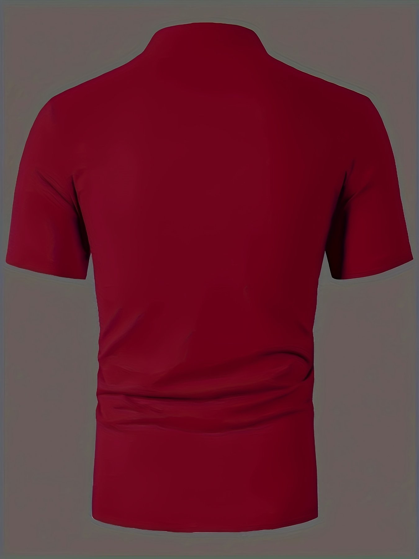 Plus-Size Men’S Short-Sleeve Casual T-Shirt – Slight Elasticity, Classic Solid Color & Button Detail, Breathable Stand-Up Collar For Spring/Summer Wear, Stylish Plussize Top, Plus Size