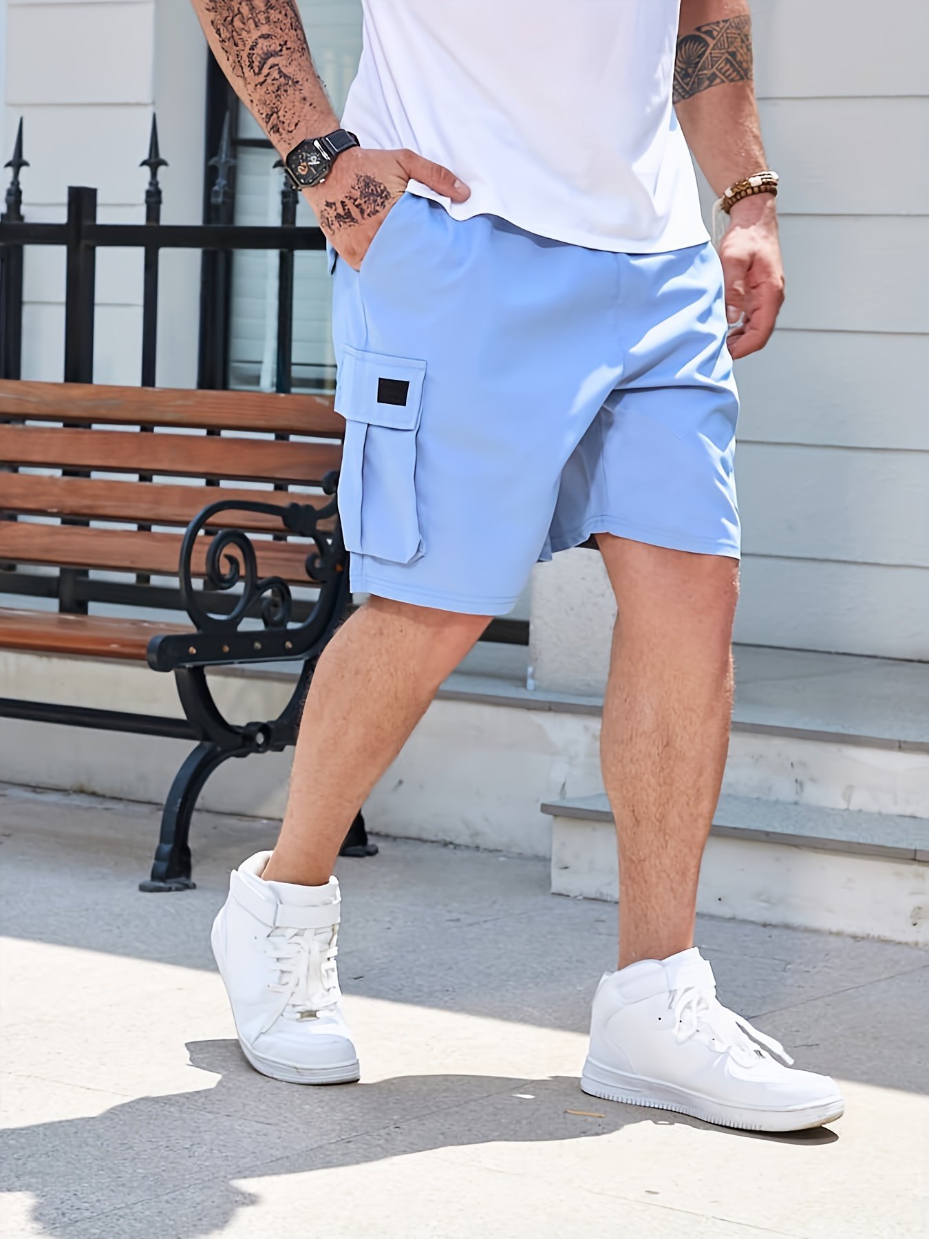 Plus Size Men’S Solid Cargo Shorts With Pocket For Workout/Outdoor, Men’S Clothing