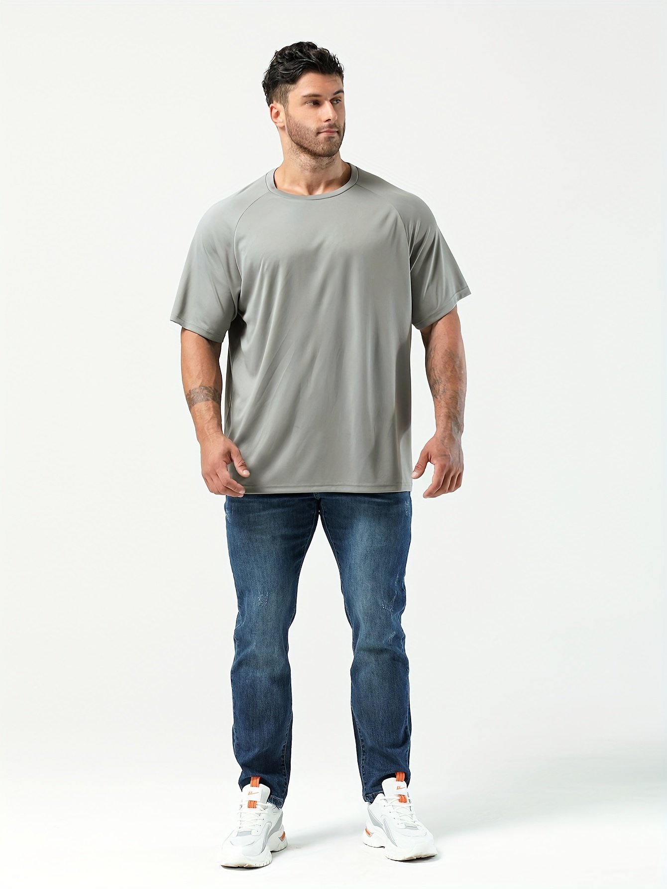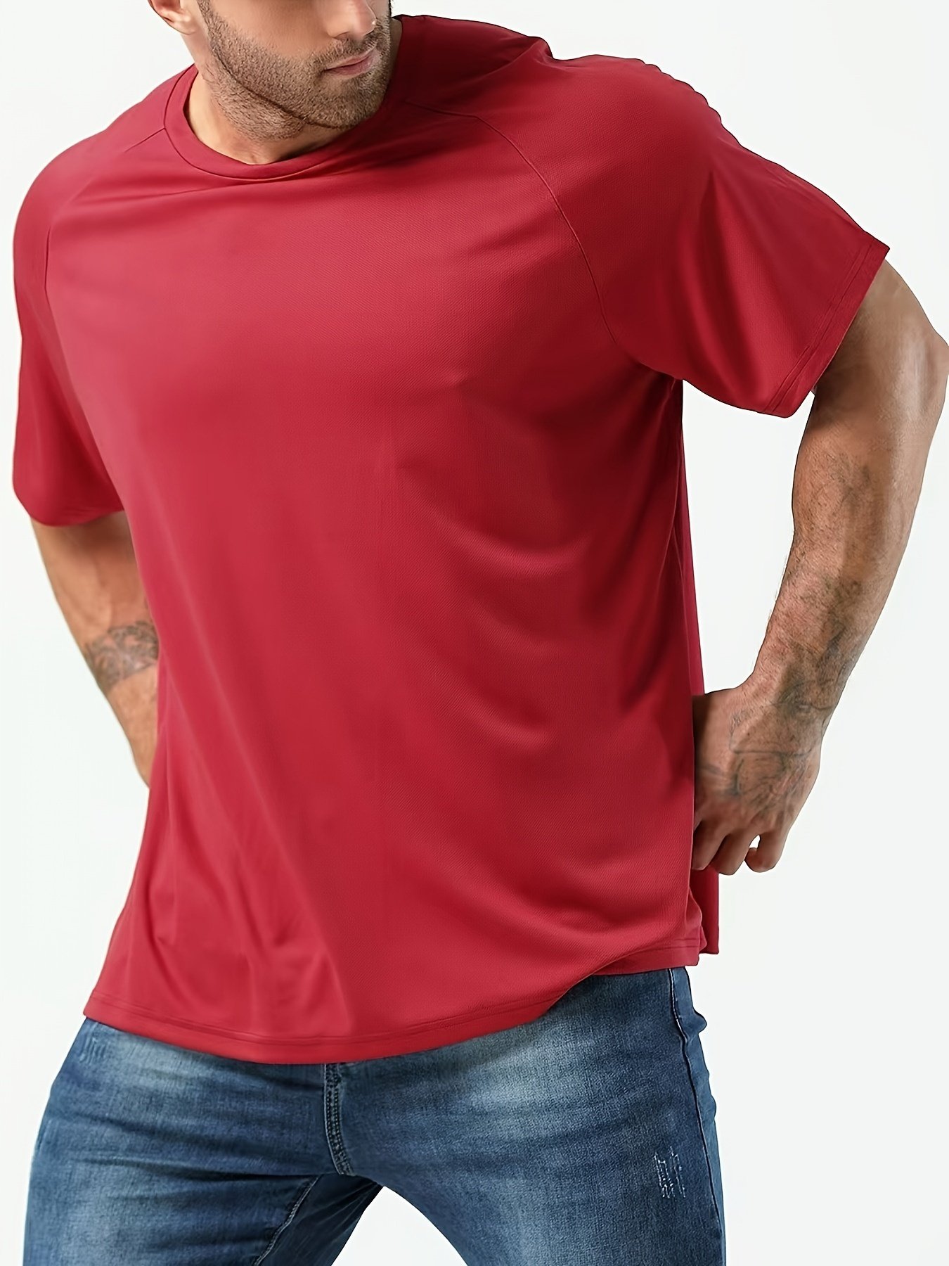 Plus Size Men’S Solid T-Shirt, Quick Dry Breathable Tees For Sports/Fitness, Oversized Short Sleeve Tops For Big & Tall Males, Men’S Clothing