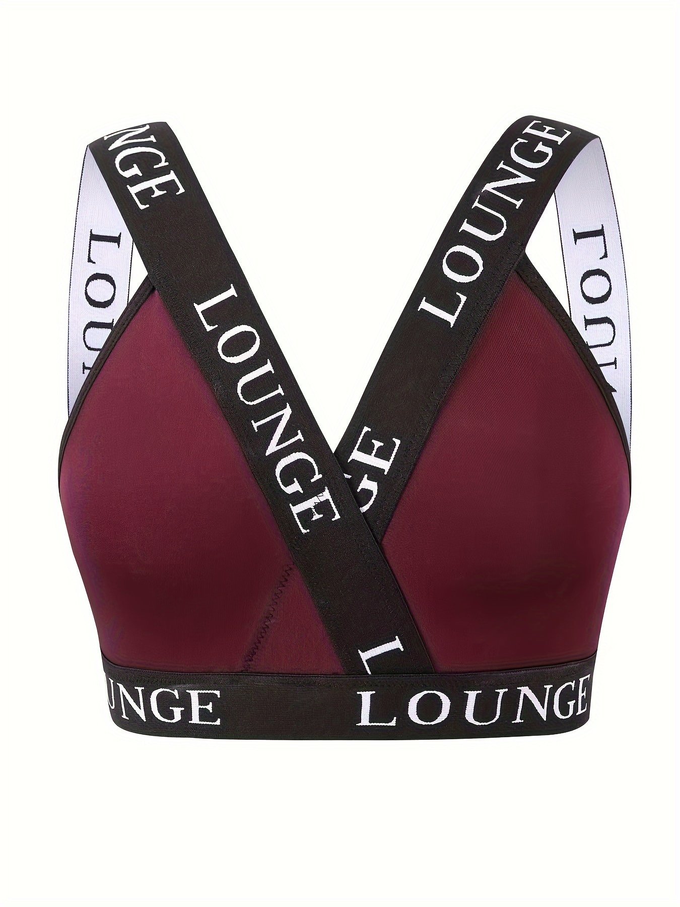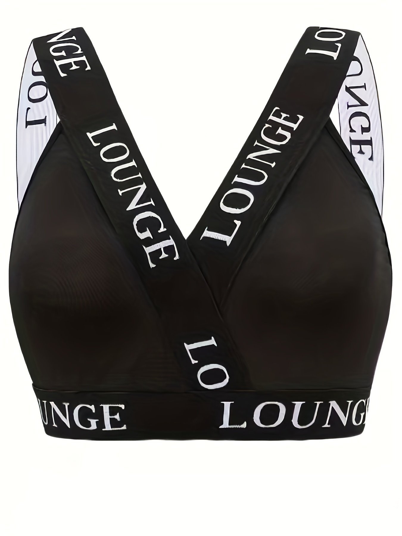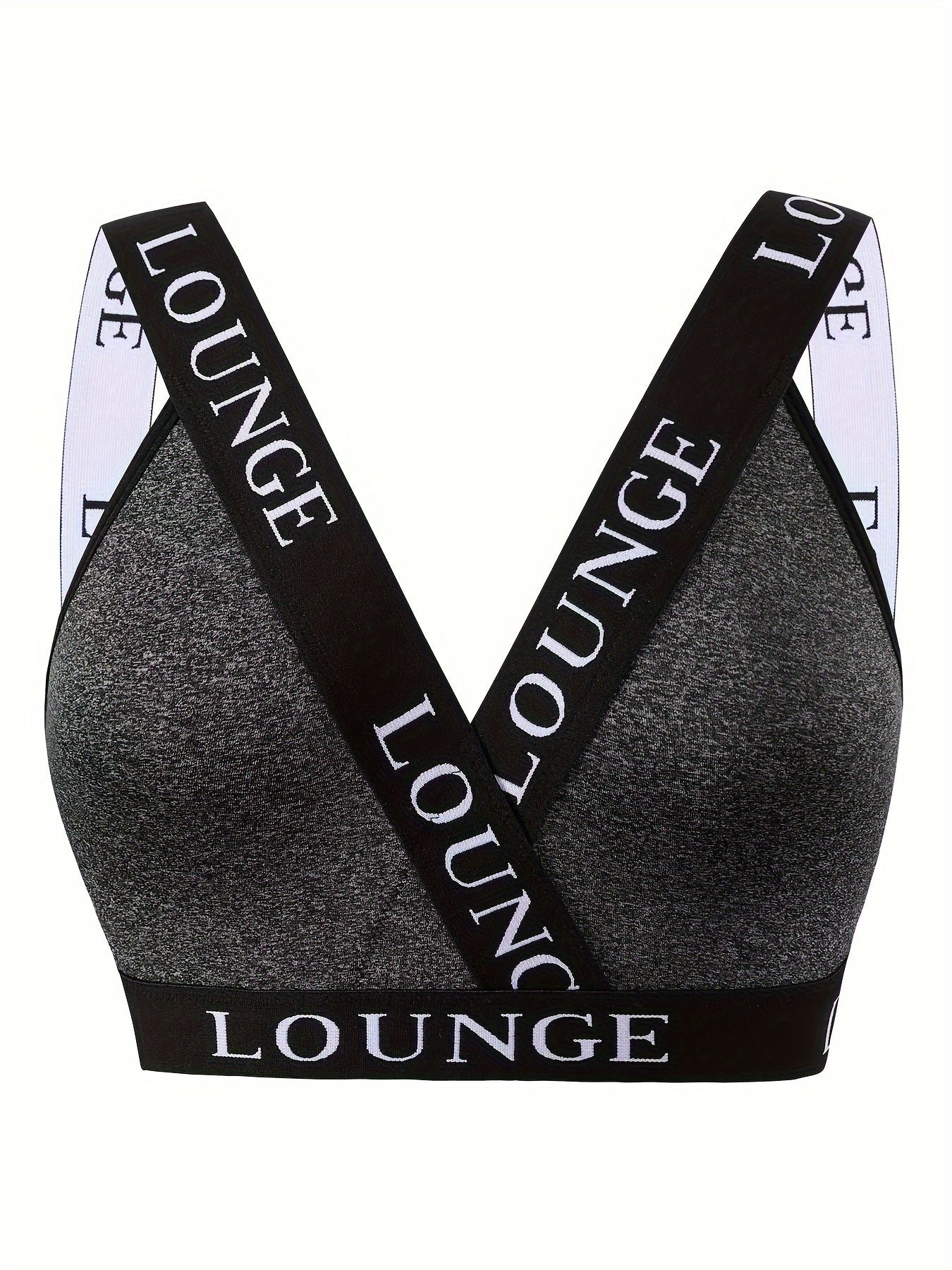 Plus Size Sexy Bra, Women’S Plus Contrast Letter Tape Non Padded High Stretch Bralette