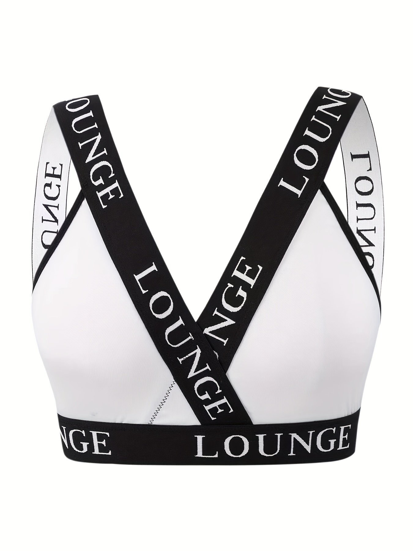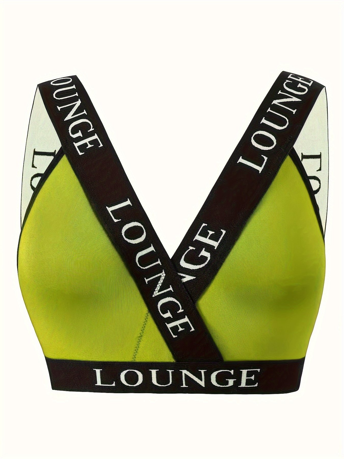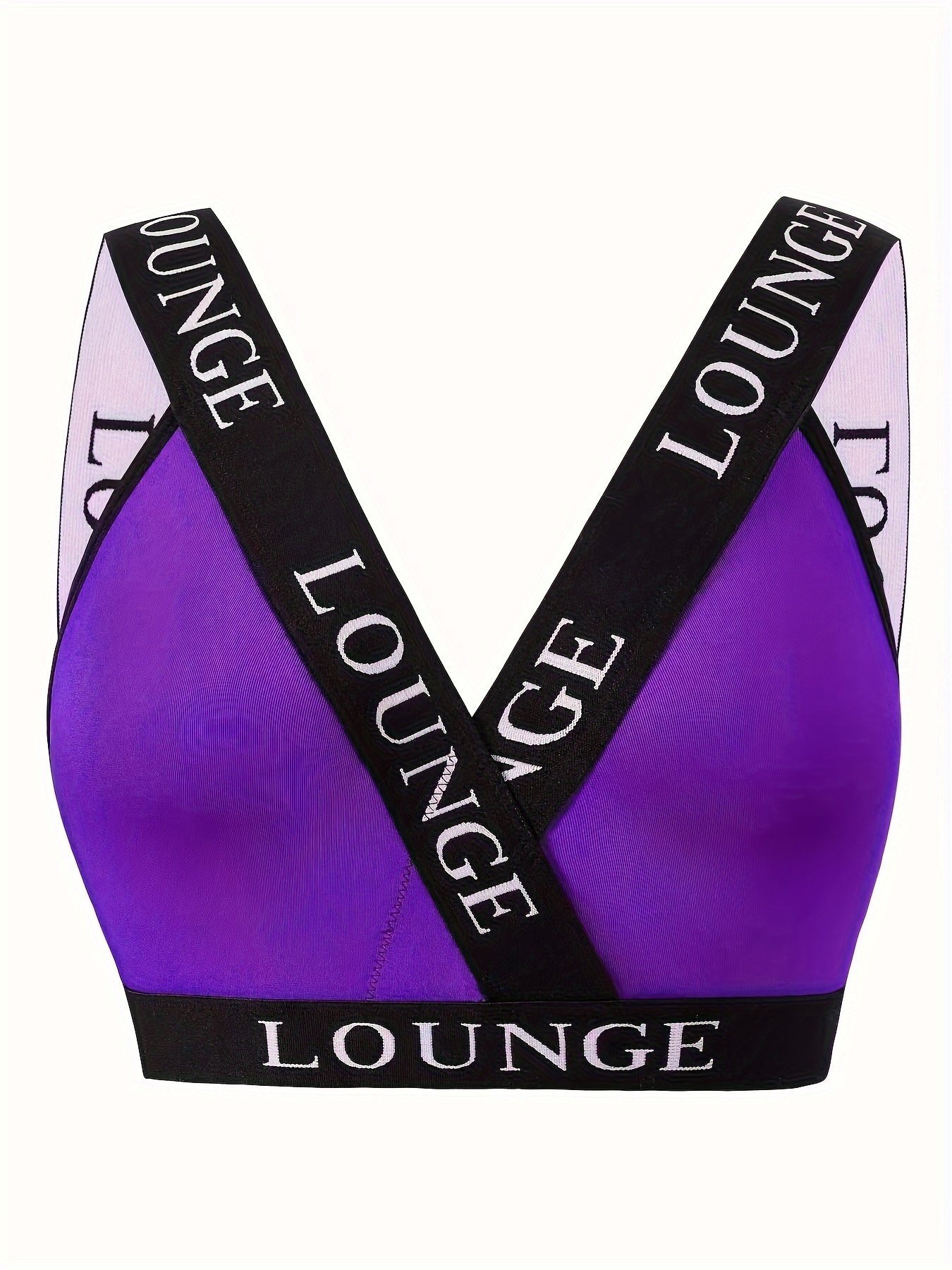 Plus Size Sexy Bra, Women’S Plus Contrast Letter Tape Non Padded High Stretch Bralette