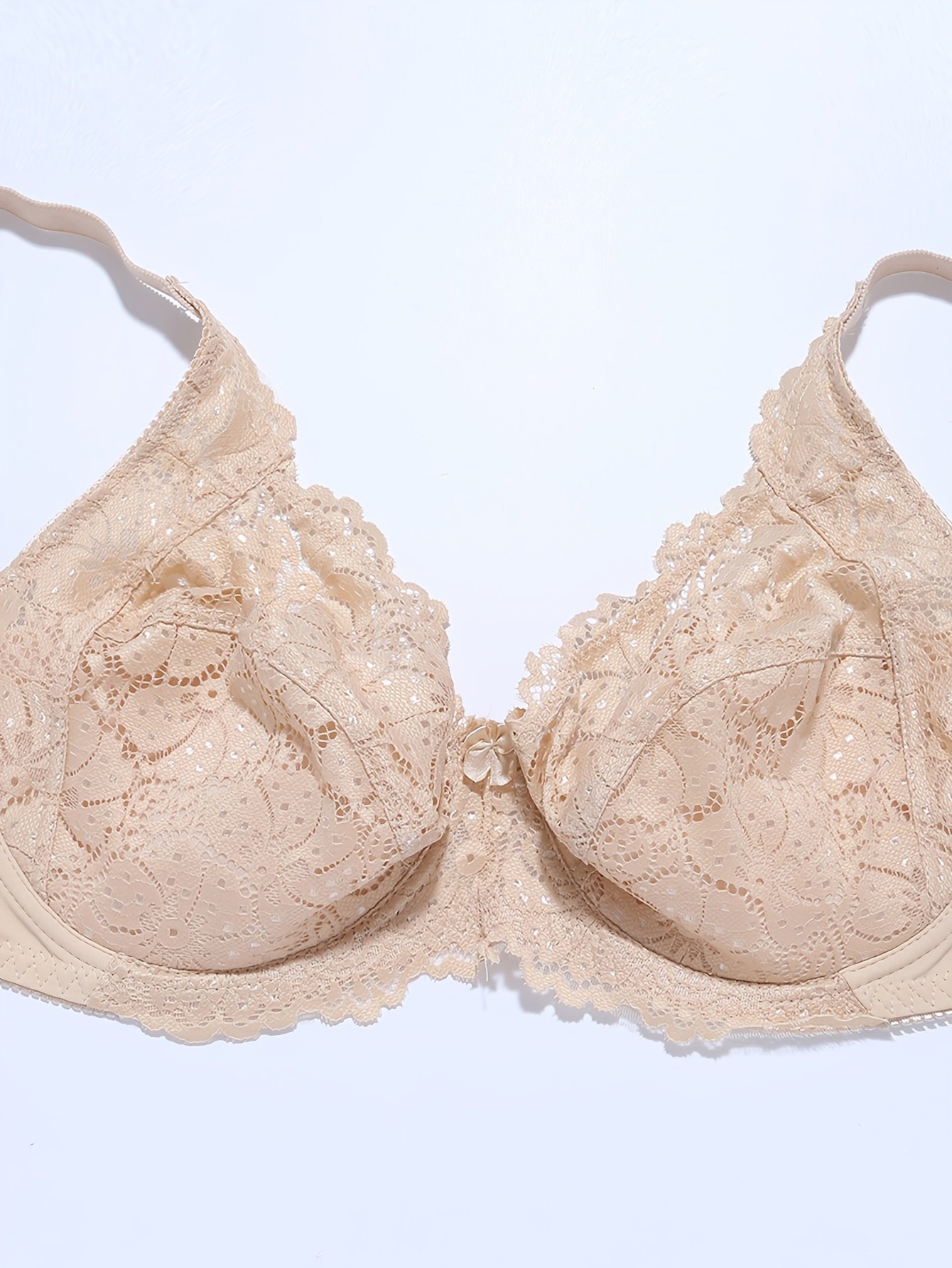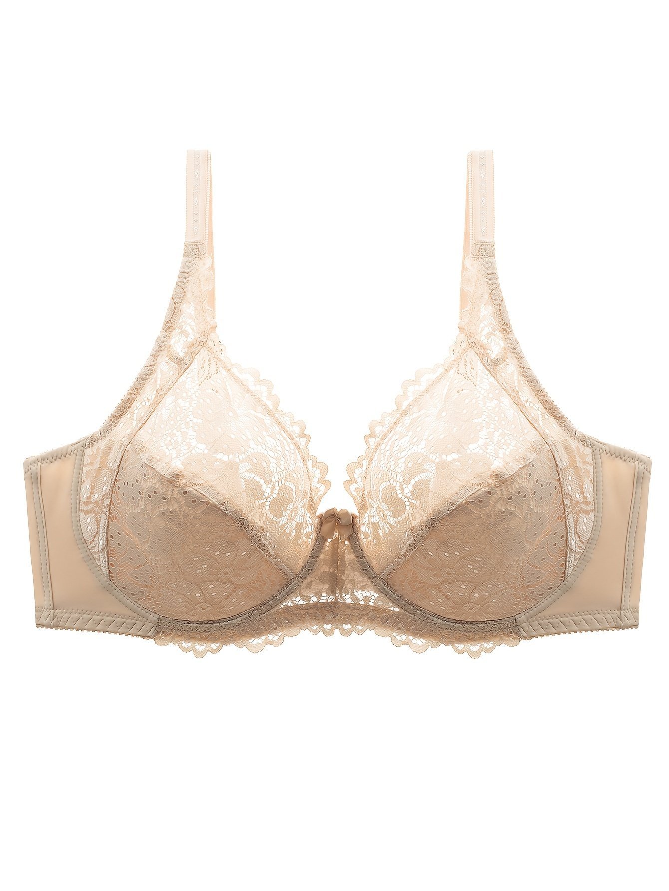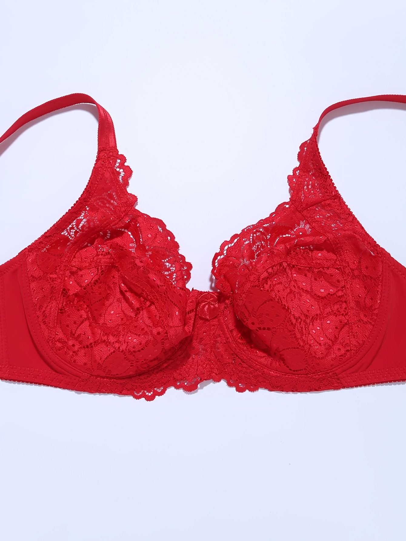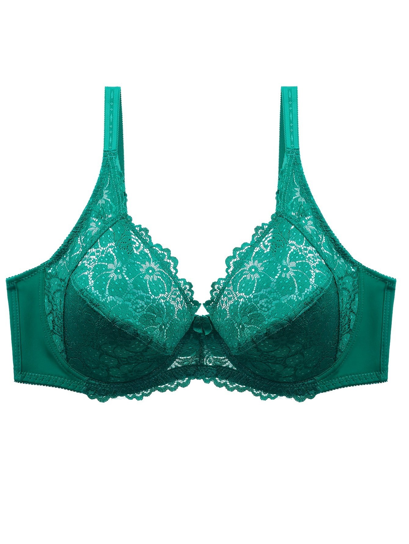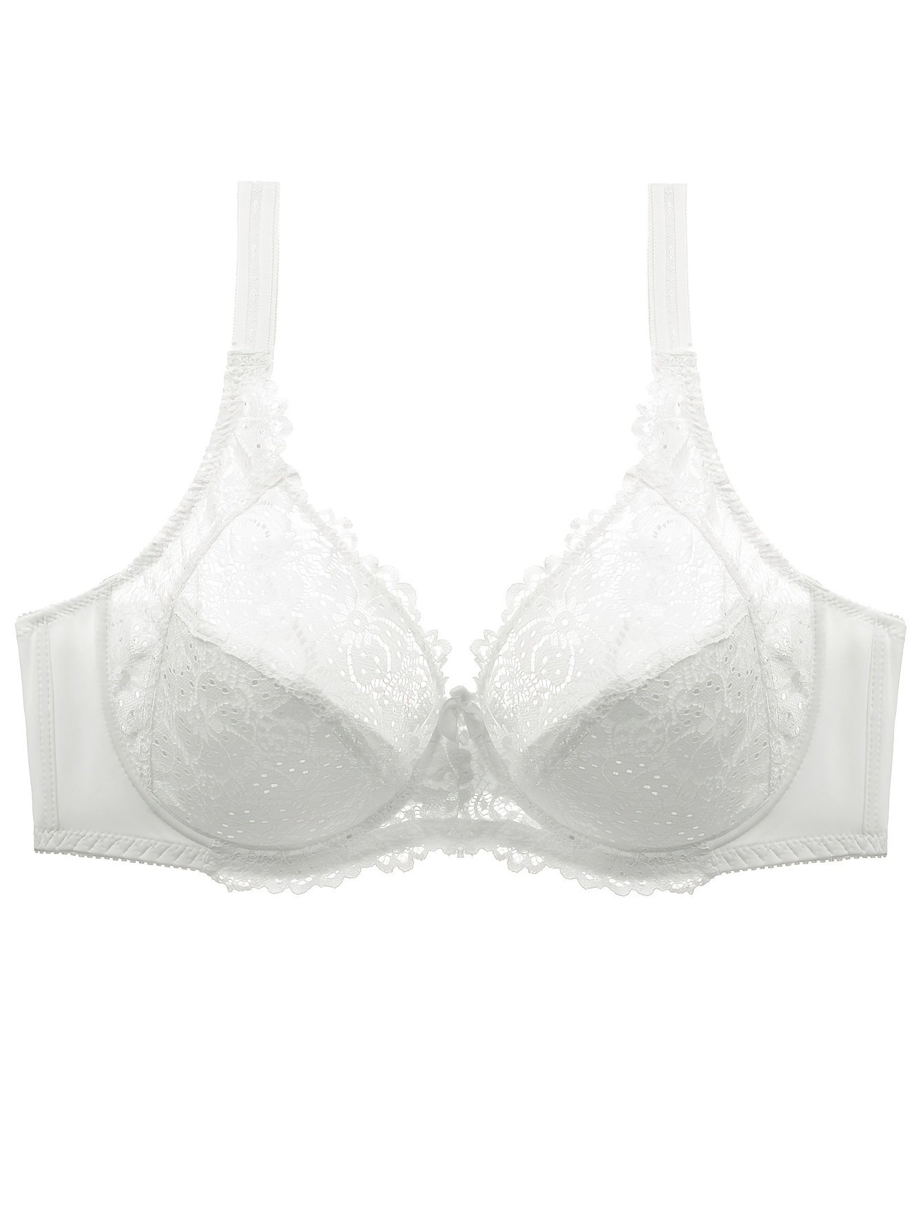 Plus Size Sexy Bra, Women’S Plus Solid Contrast Lace Floral Trim Medium Stretch Comfort Bra