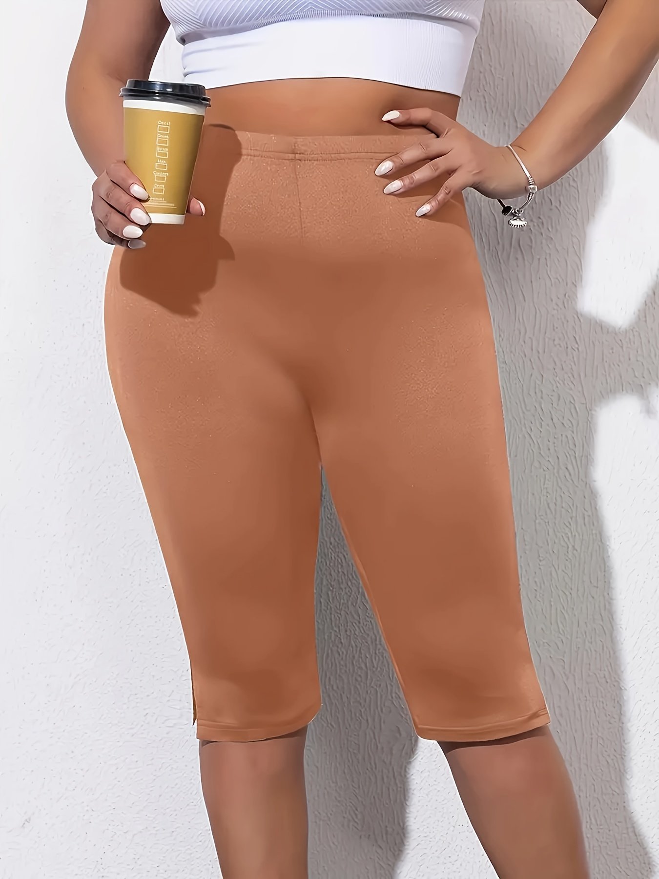 Plus Size Side Split Skinny Shorts, Casual Every Day Stretchy Short Leggings, Women’S Plus Size?Clothing