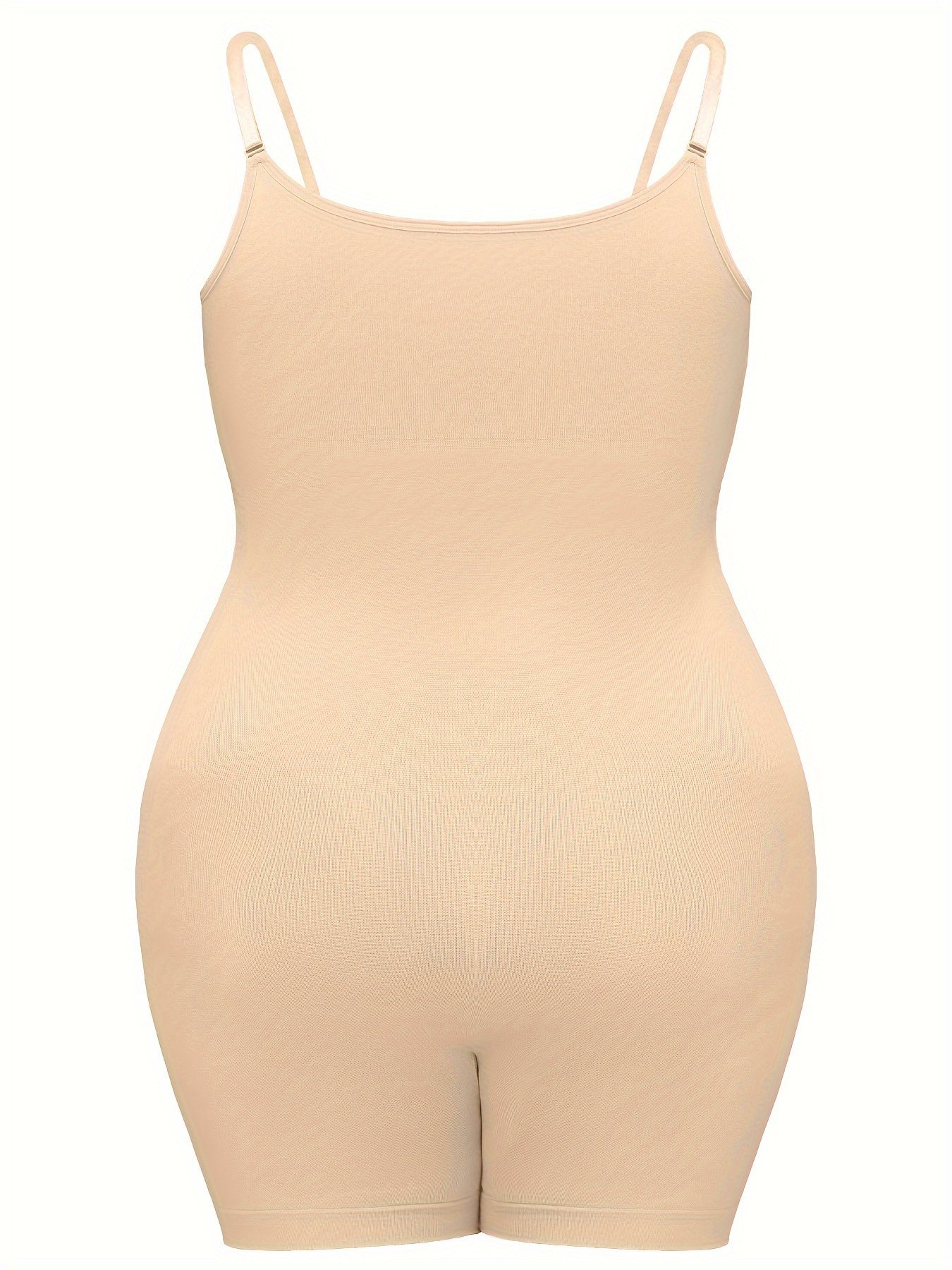 Plus Size Simple Shapewear Bodysuit, Women’S Plus Solid Tummy Control Butt Lifter Thigh Slimmer Full Body Shaper