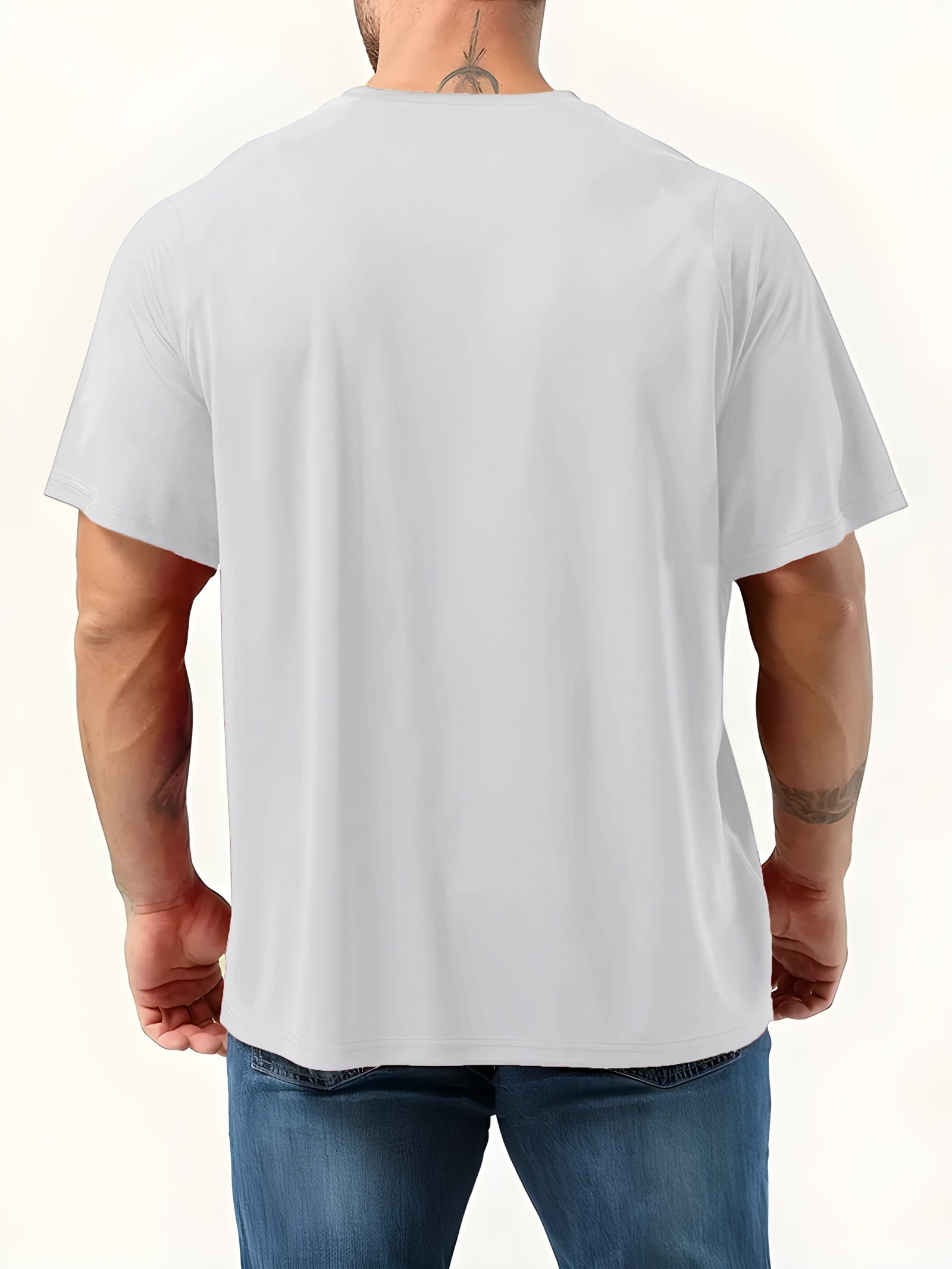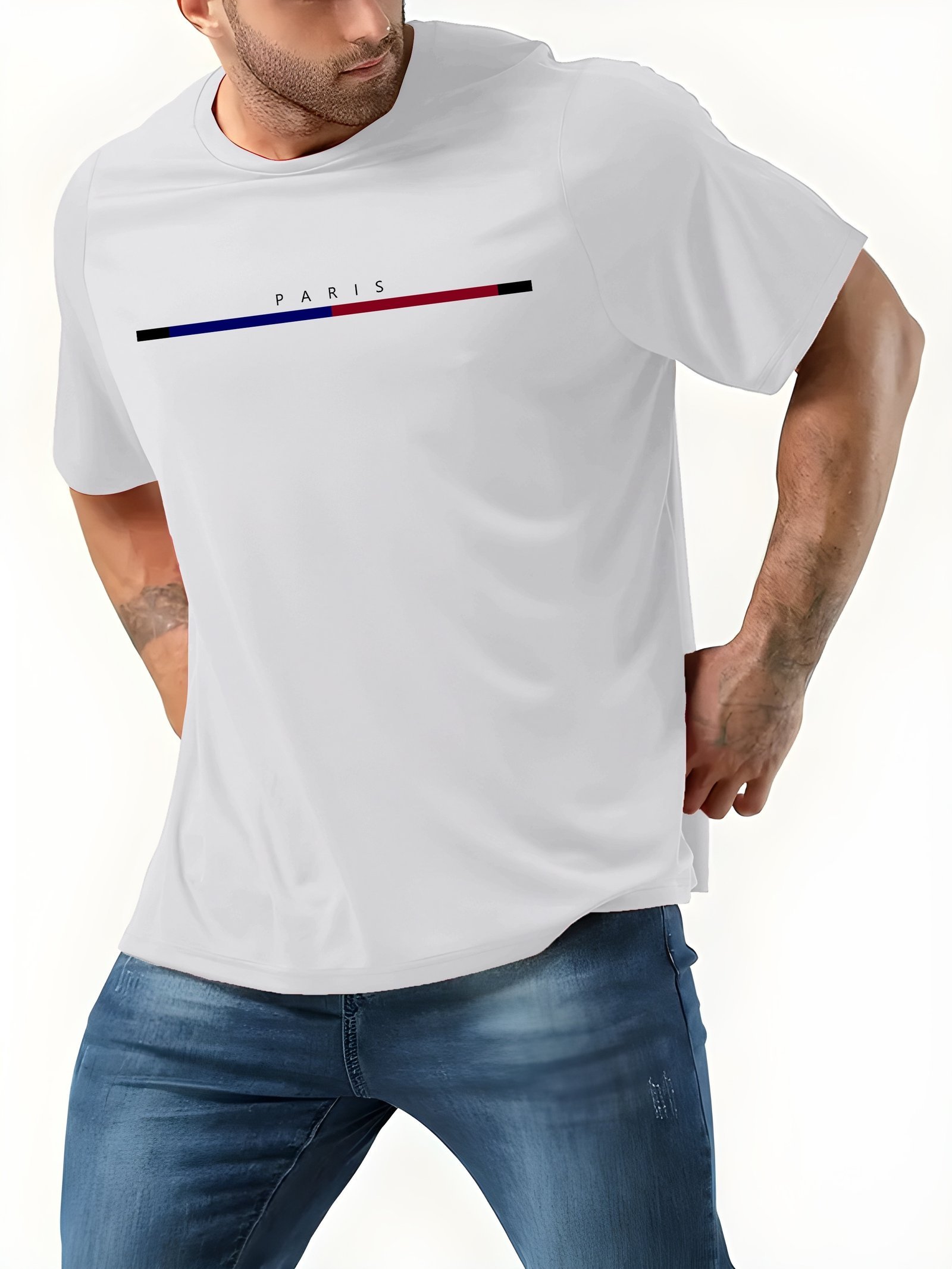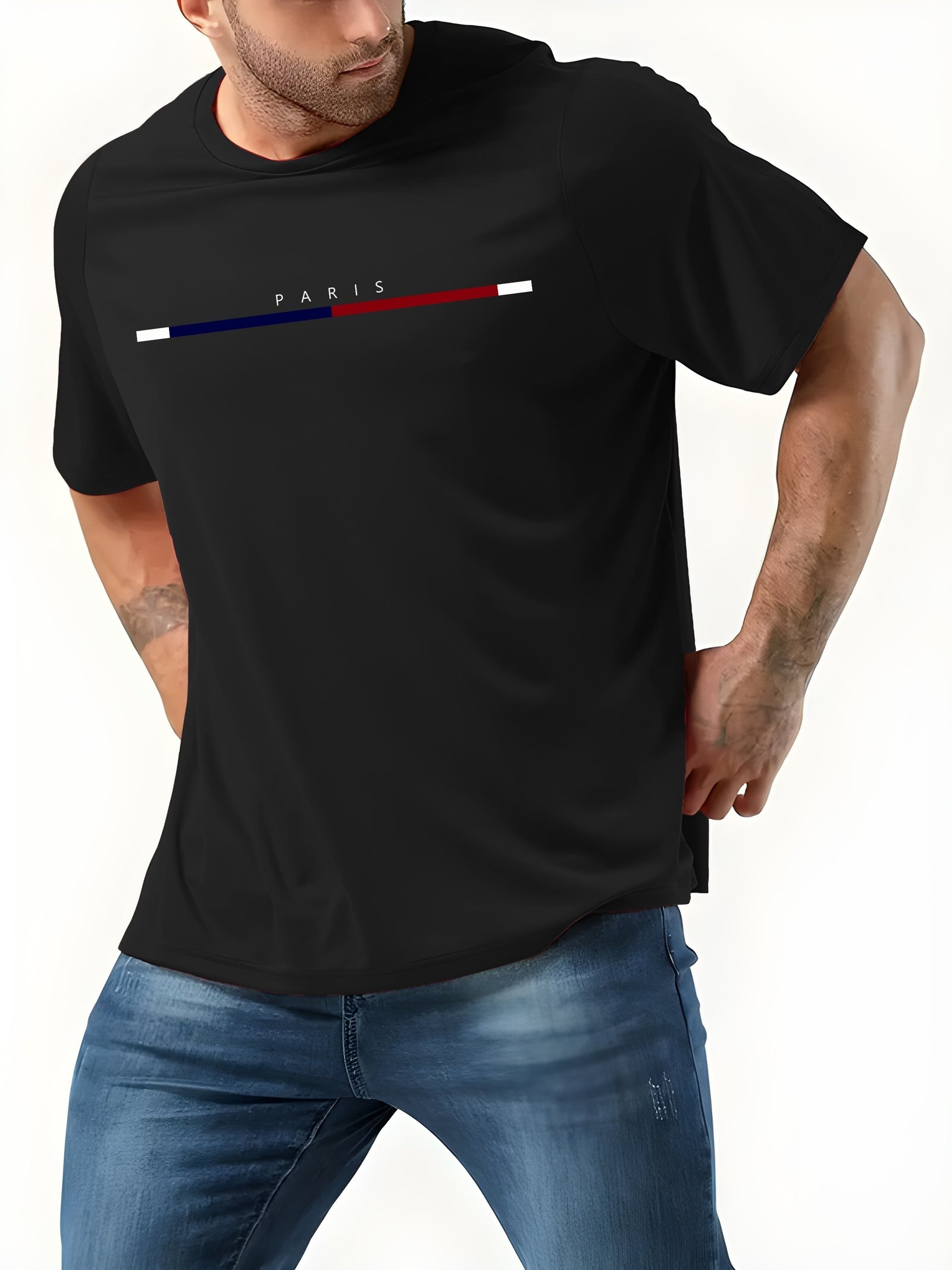Plus Size Summer T-Shirt With Paris Print, Men’S Short Sleeve Tees For Outdoor Daily Life, Casual Trendy Tops For Big & Tall Guys