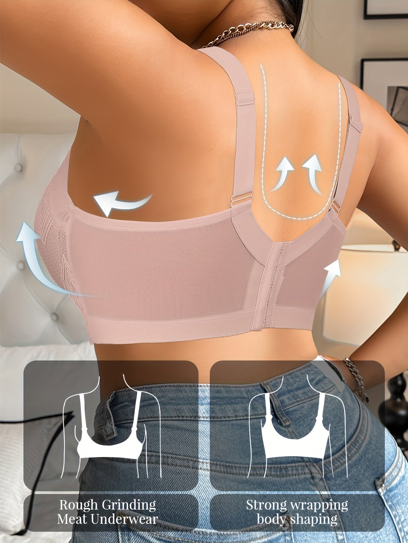Plus Size Women’S Elegant Contrast Lace Underwire Bra – Anti-Sagging Comfort Fit, Medium Support Steel Boning & Non-Detachable Padded Cups, Solid Black For Everyday & Special Occasions, Special Occasion Lingerie | Pearl Charm Bra | Adjustable Straps