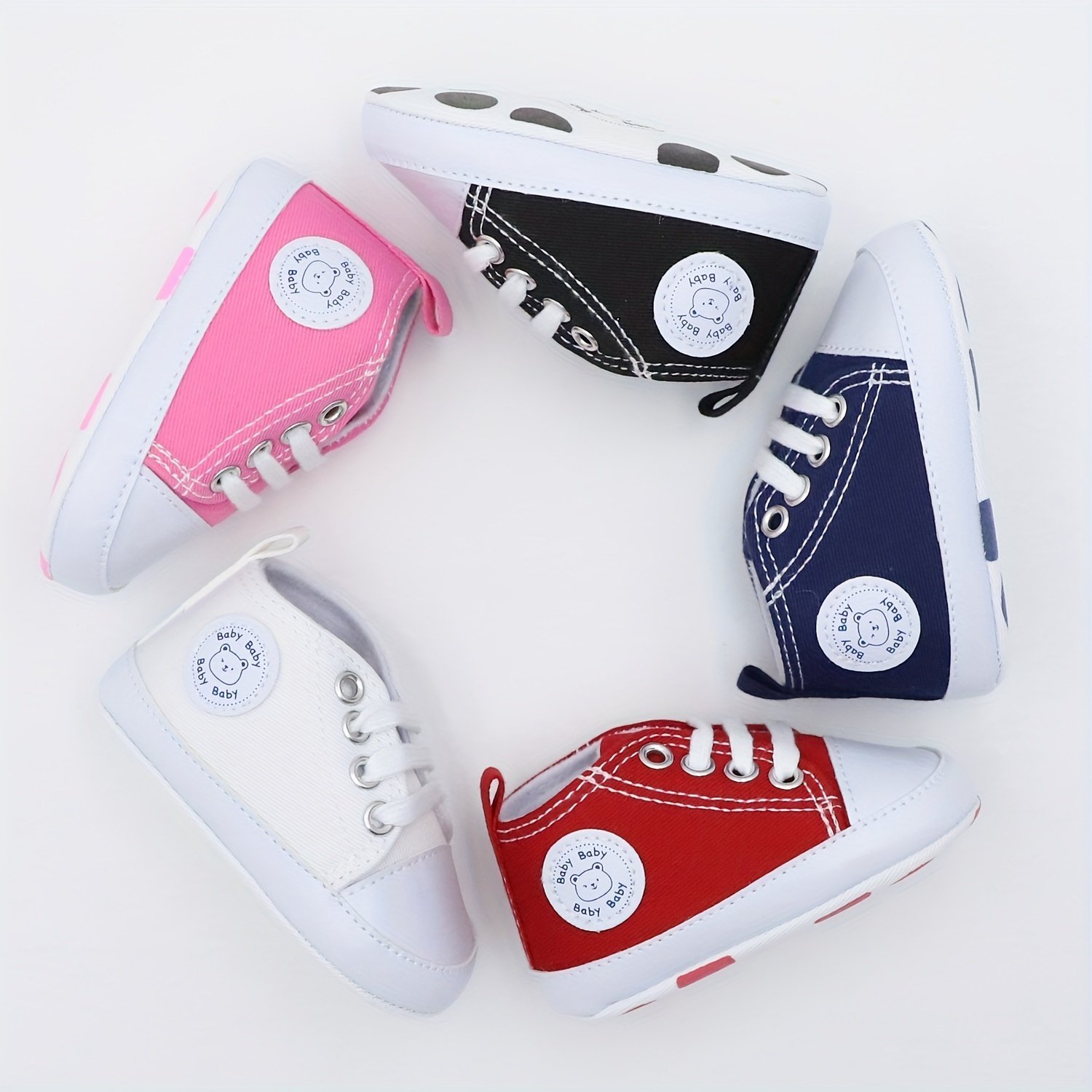 Rabeisir Baby ‘ Toddler Walking Shoes – Soft Canvas Sneakers With Eva Cushion, Adjustable Lace-Up Low-Top Design, 4-Color Options (White/Pink/Black/Red) For All-Season Casual & Party Wear, Party Toddler Sneakers | Classic Sneaker Design | Eva Cushioned Sole, Toddler Shoes, Rabeisir