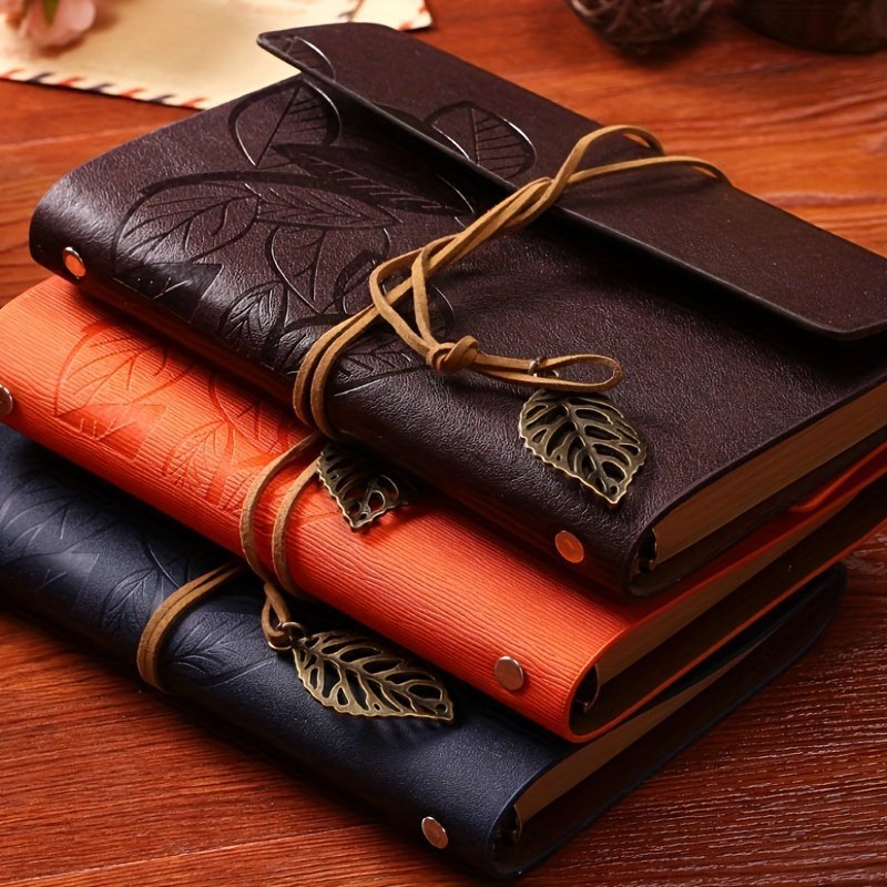 Retro Leaf Leather Loose-Leaf Notebook Strap Portable Travel Record Hand Ledger Learning Stationery