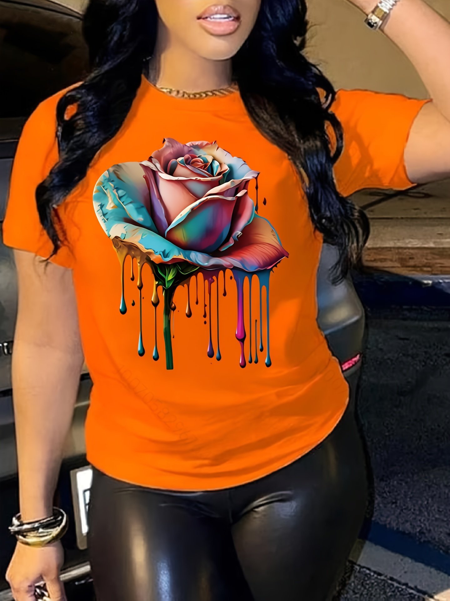 Rose Print Crew Neck T-Shirt, Casual Short Sleeve Tee For Spring & Summer, Women’S Clothing