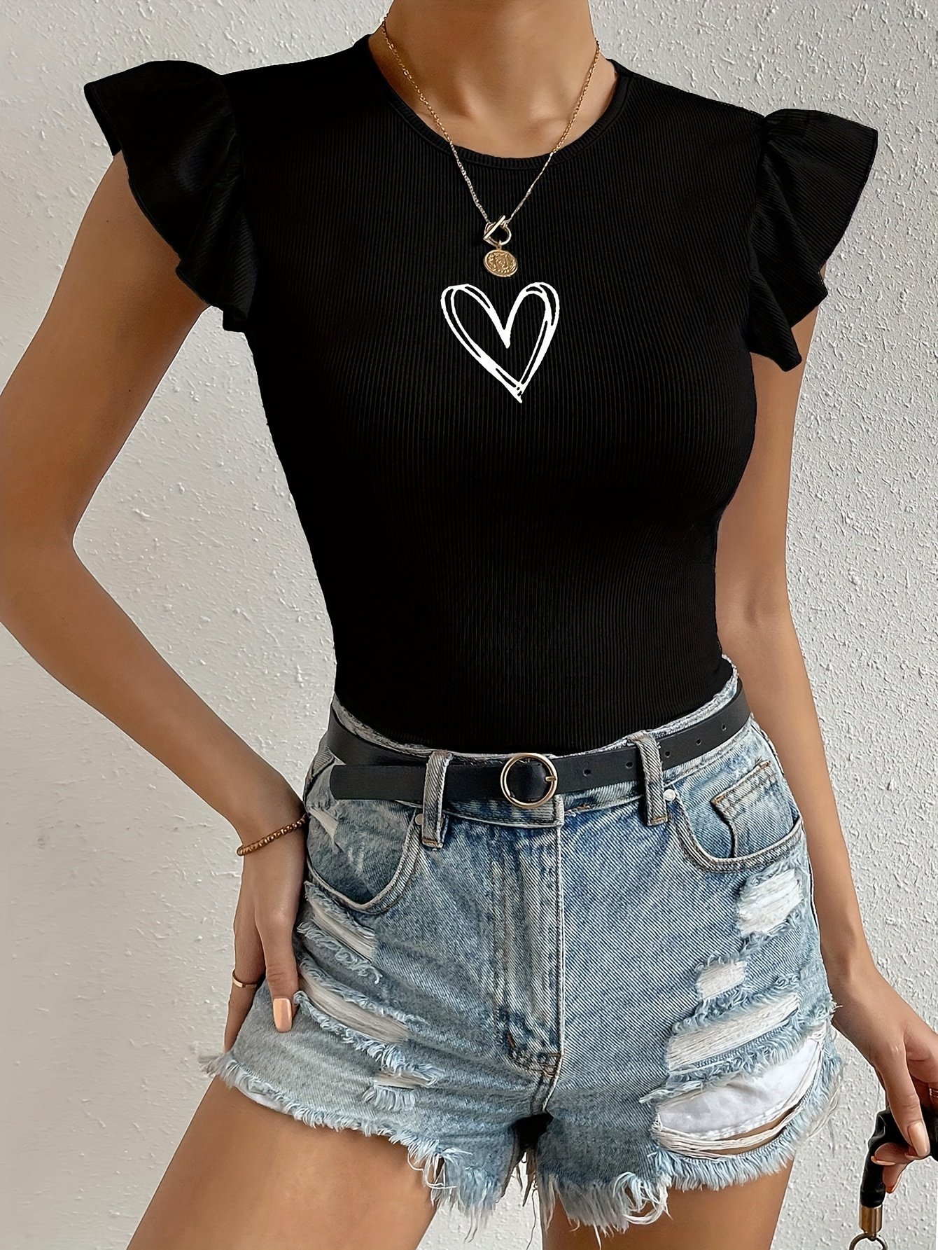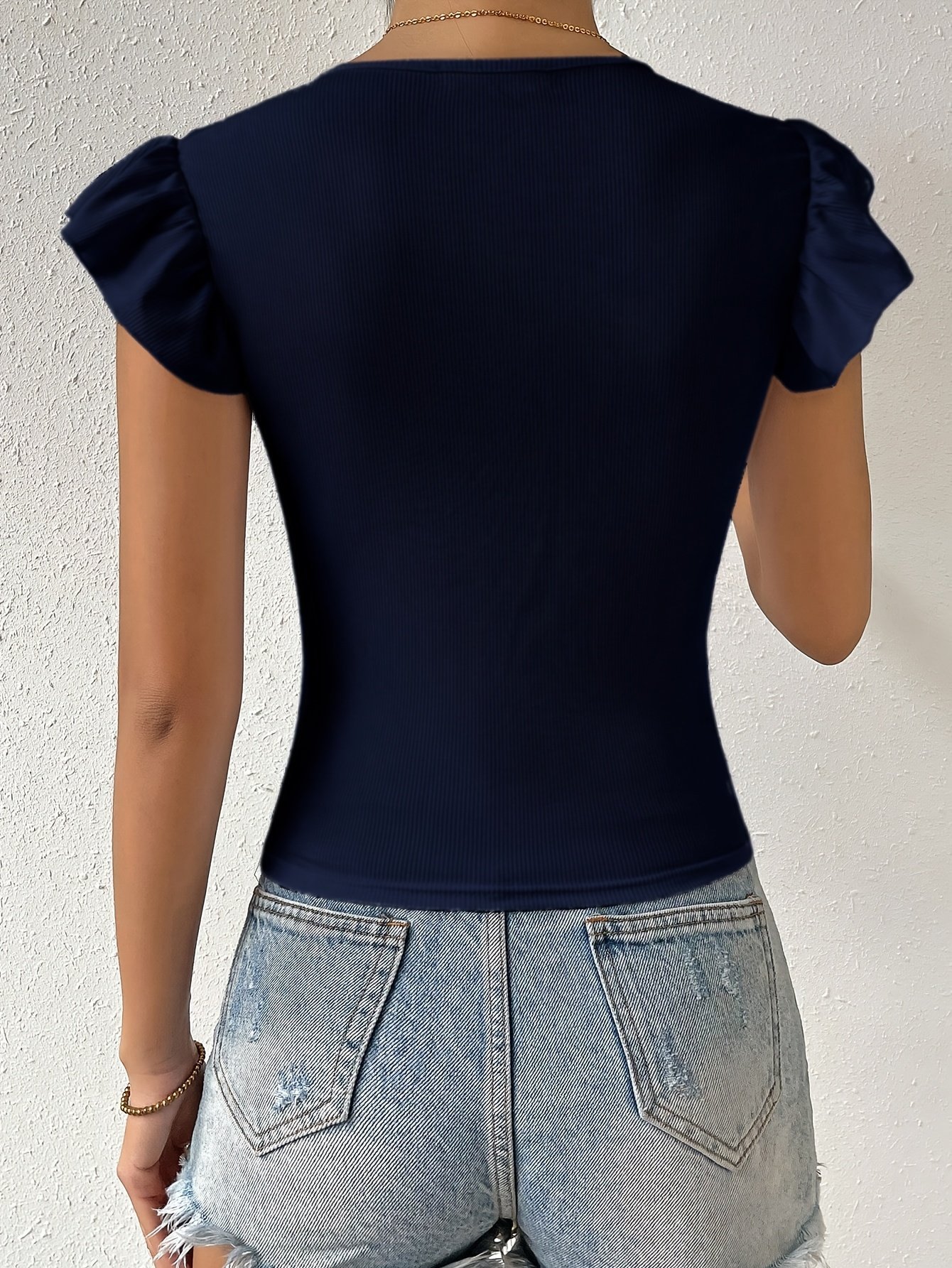 Ruffle Trim Crew Neck Top, Versatile Solid Color Slim Top For Spring & Summer, Women's ClothingRuffle Trim Crew Neck Top, Versatile Solid Color Slim Top For Spring & Summer, Women's ClothingRuffle Trim Crew Neck Top, Versatile Solid Color Slim Top For Spring & Summer, Women's Clothing