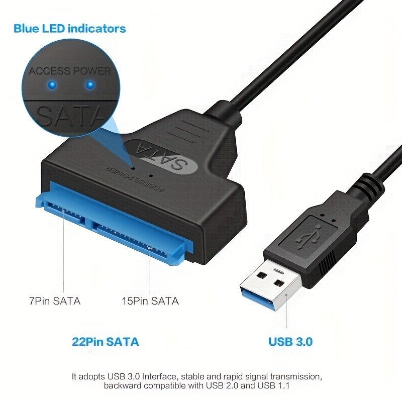 Sata To Usb Cable, Usb 3.0 To Sata Iii Hard Driver Adapter Compatible For 6.35 Cm Hdd And Ssd