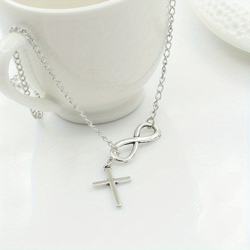 Simple Style Ladies Necklace 2024 Fashion New Lucky Number 8 Word Cross Pendant Necklace Street Shooting Popular Jewelry Party Gift
