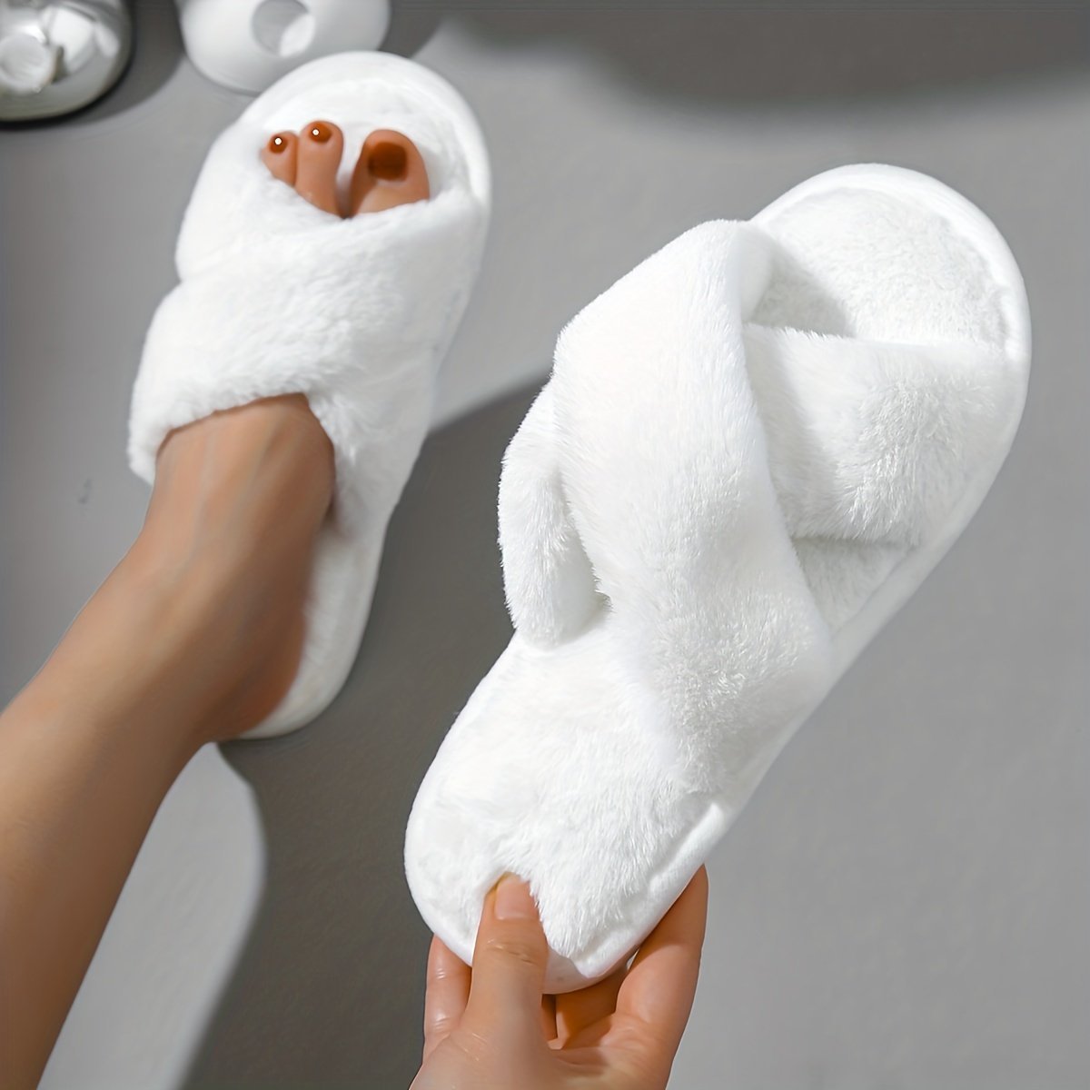 Solid Color Cross Strap Slippers, Casual Slip On Plush Shoes, Comfortable Indoor Home Slippers